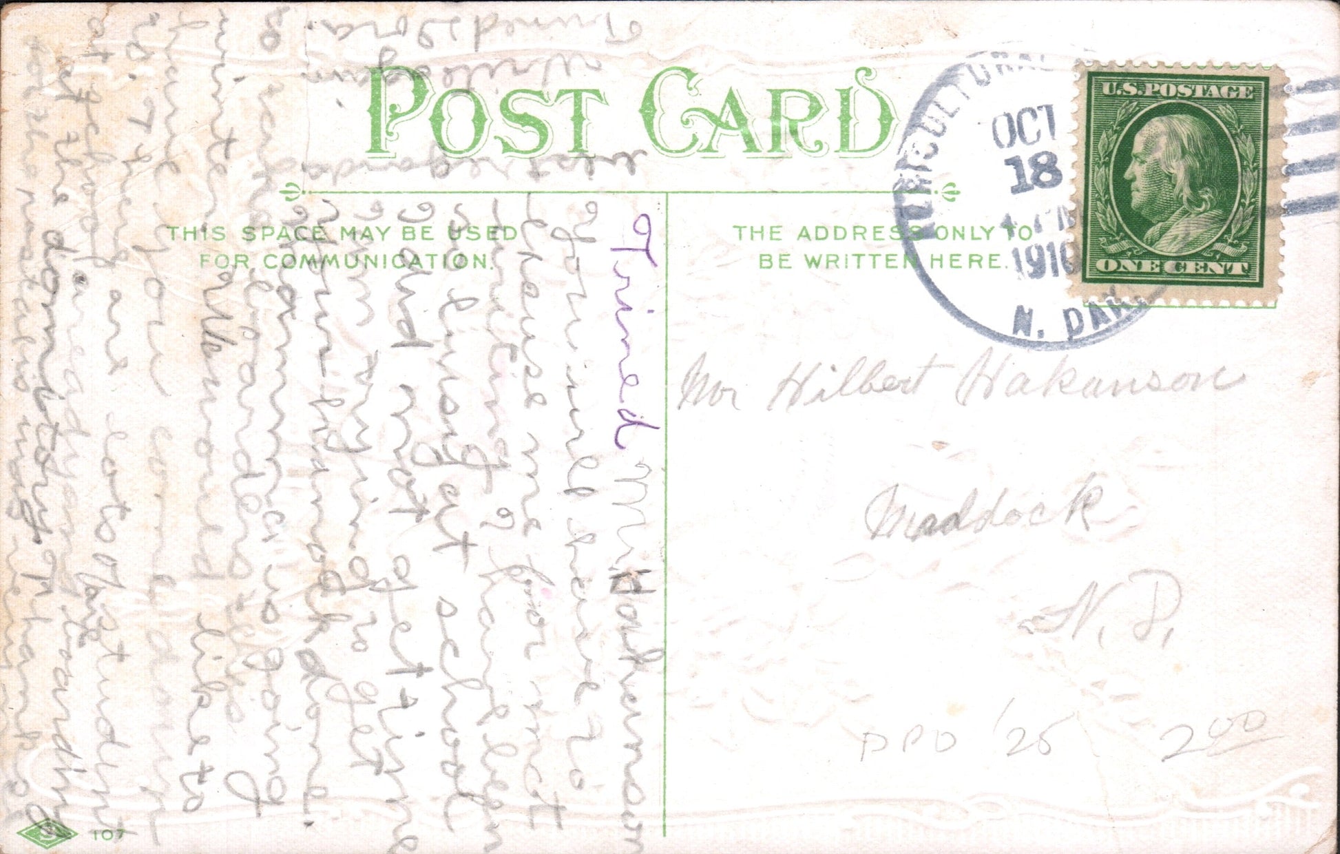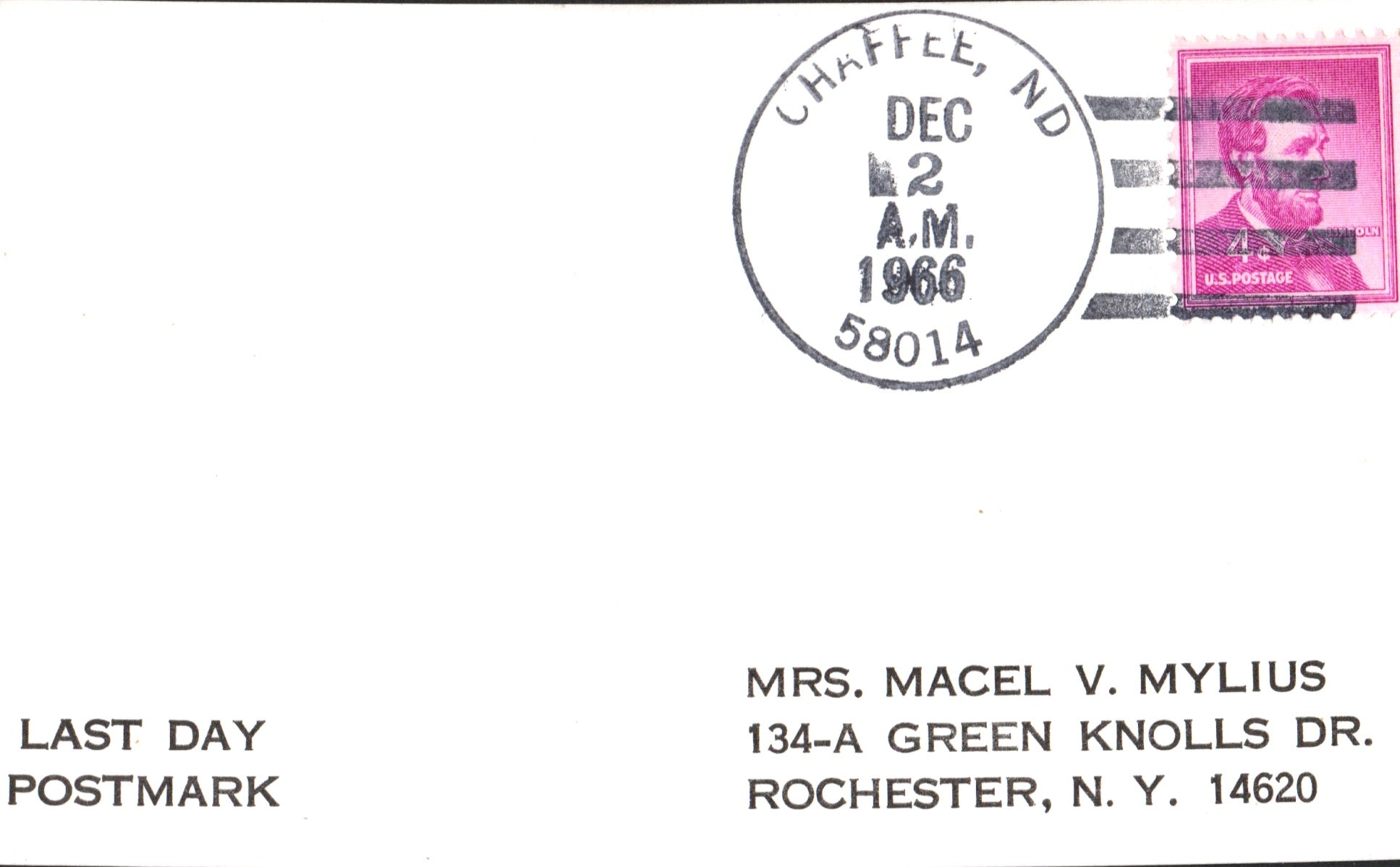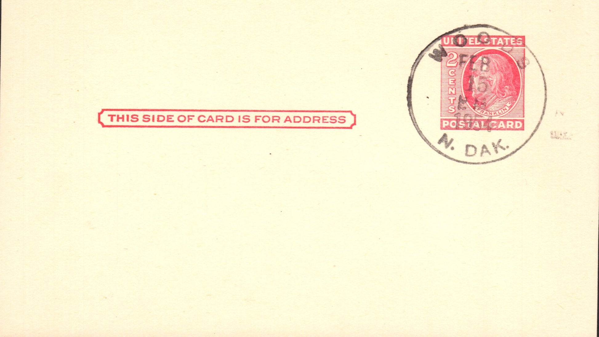 Fargo 1880 cds on cover; 1907 Flag cancel on post card; 2018 Spray-on slogan “Thinking of You”