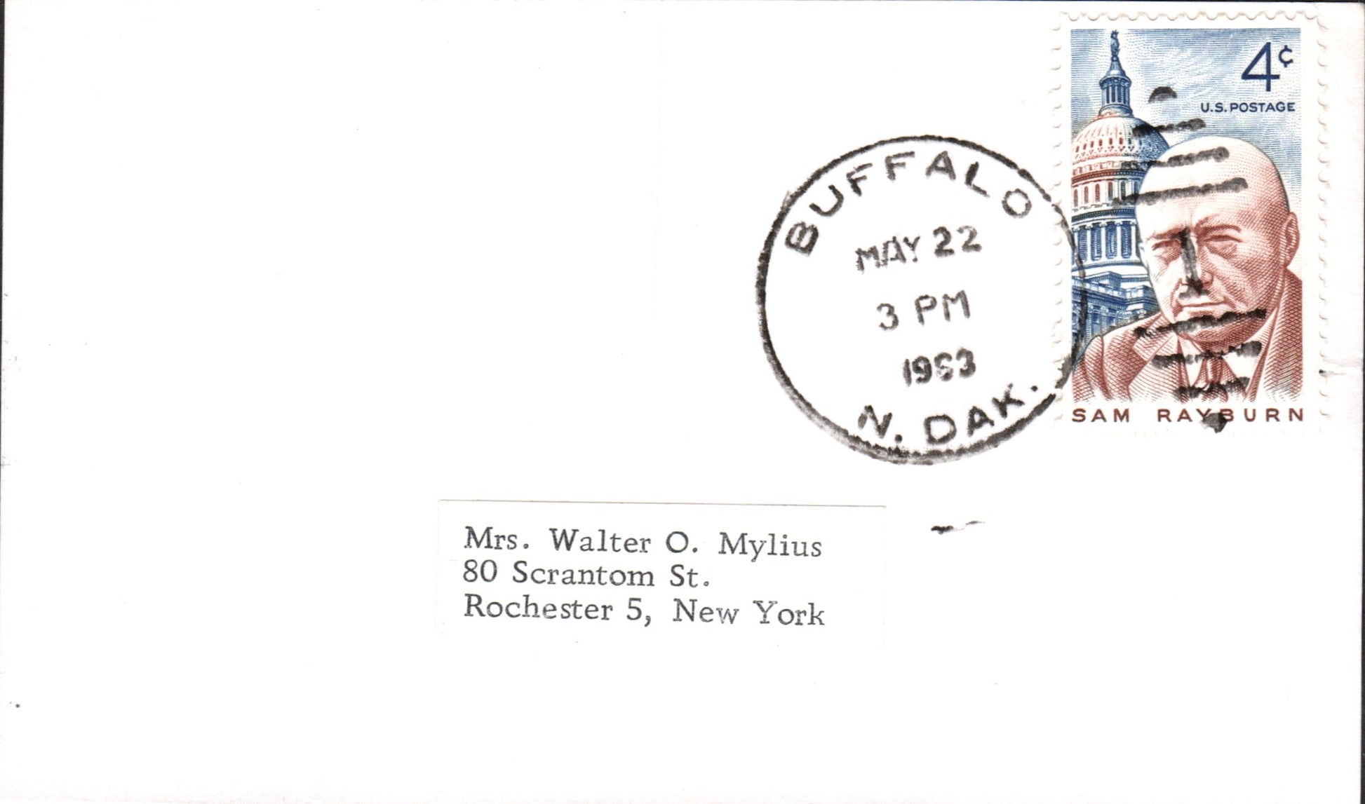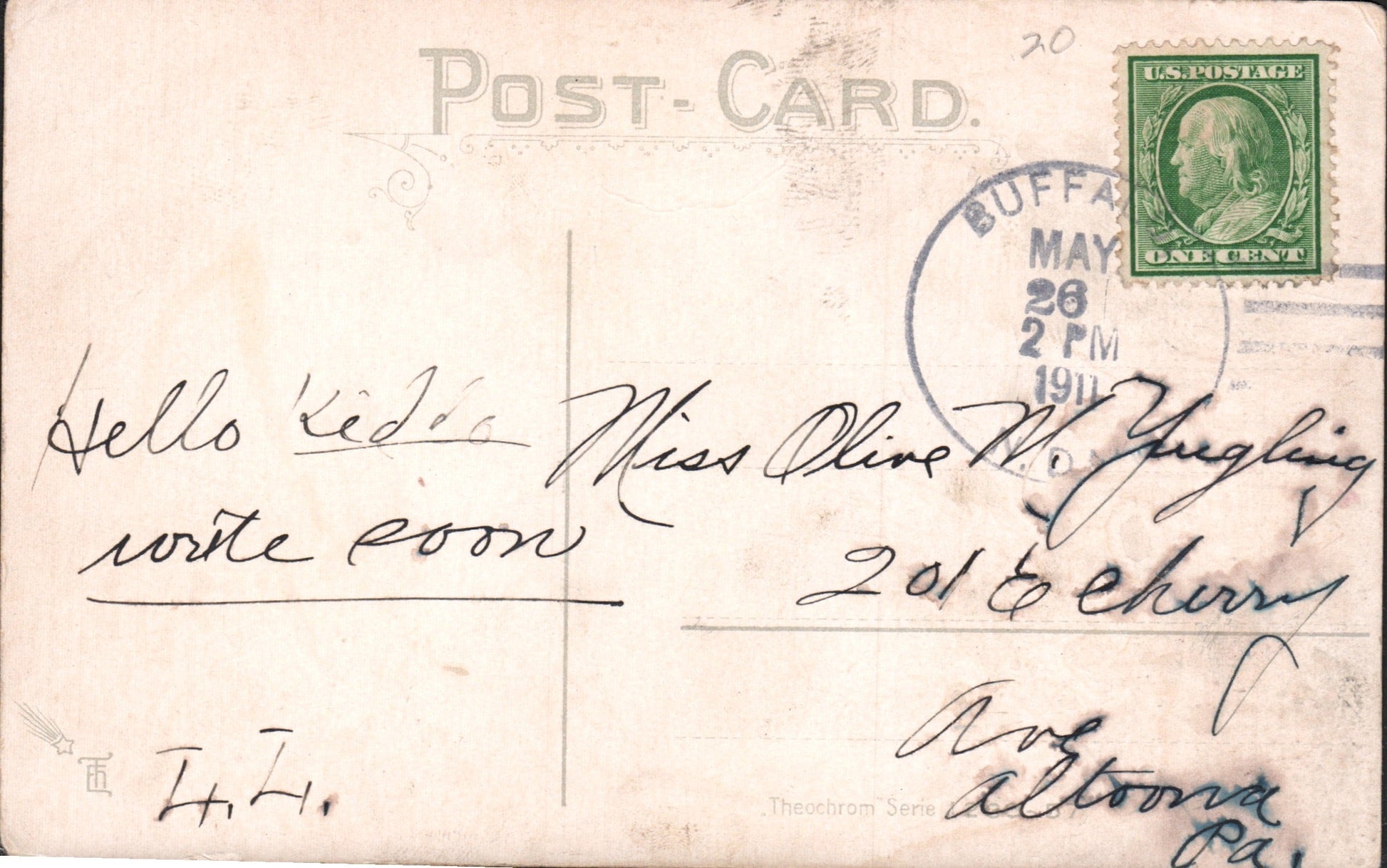 Buffalo 1911 4-bar on post card; 1963 duplex on 3x5 card