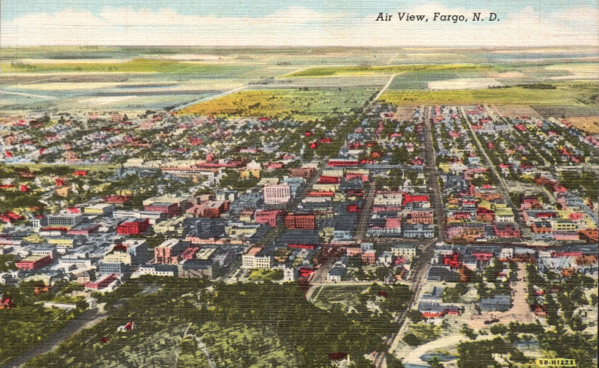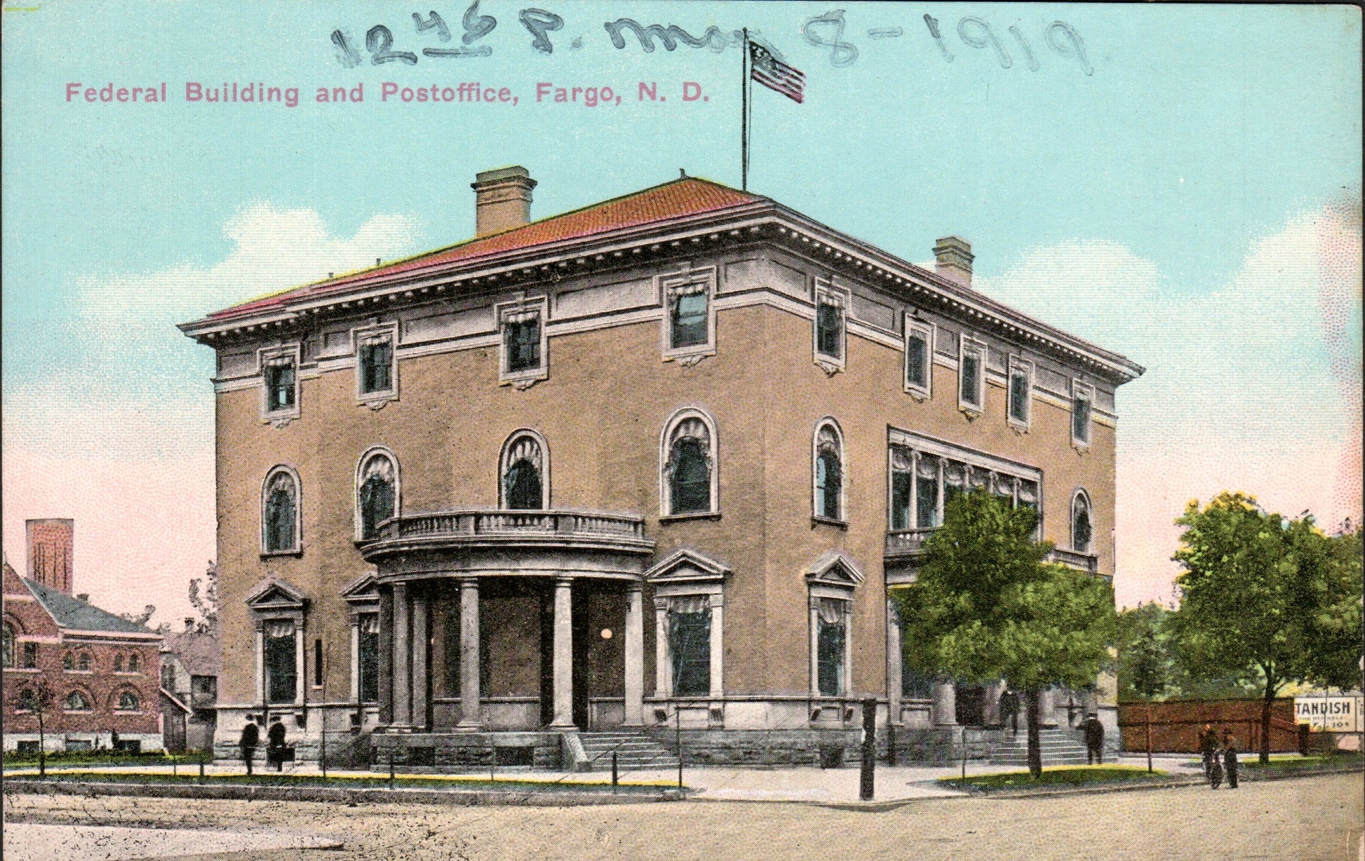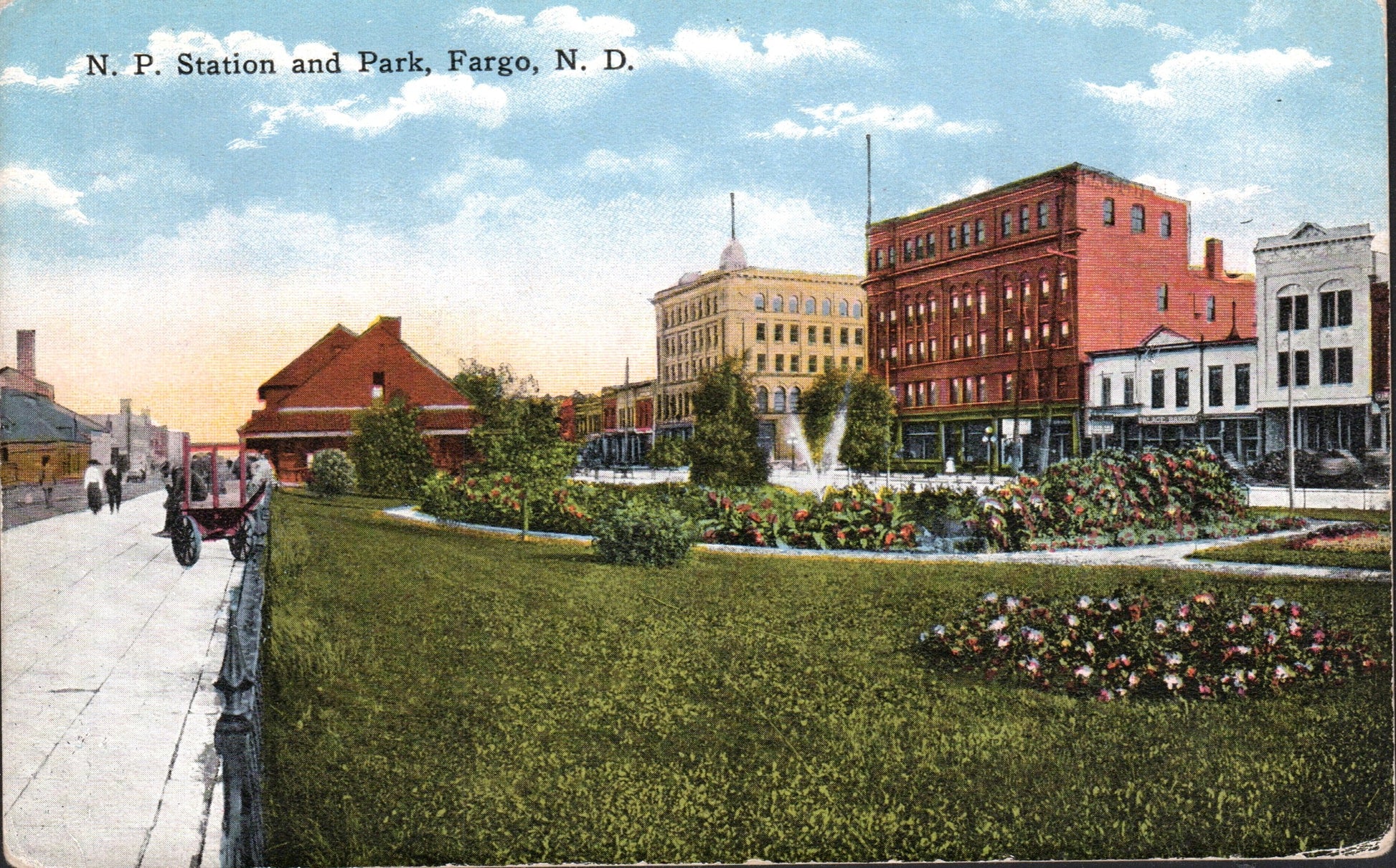 Post cards: “Air View” [linen]; “N.P. Station and Park” [c.1910]; “Federal Building and Postoffice” [1910]; “Veterans Hospital” [linen]