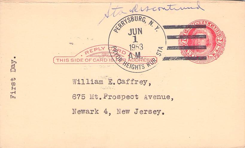 - Pryor Heights RB (1953-1960) VF 1953 4-bar on Postal Card