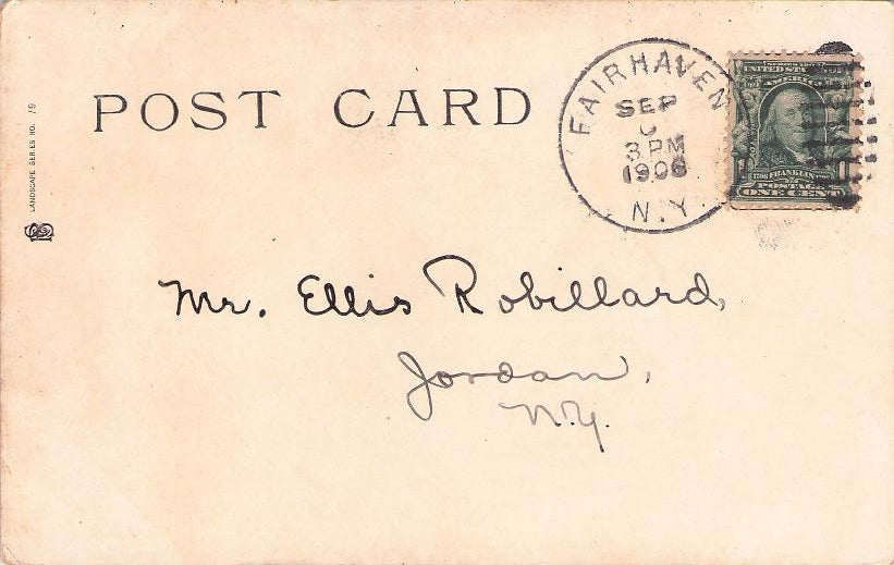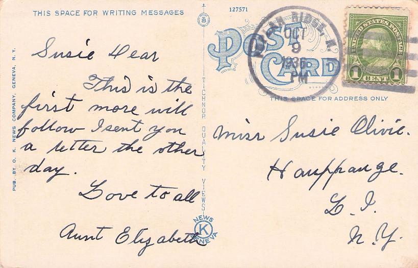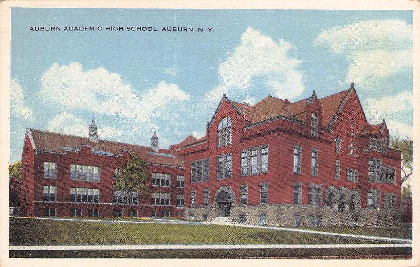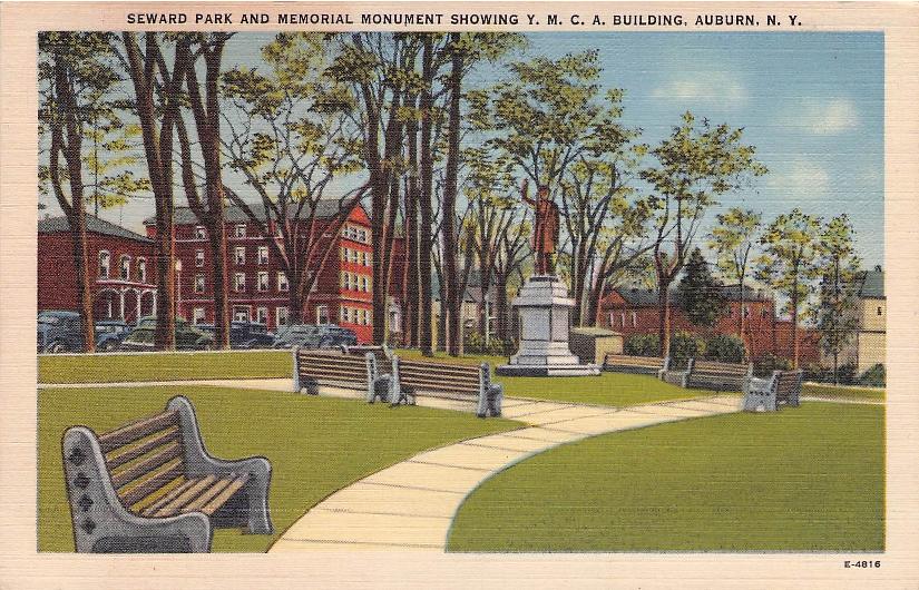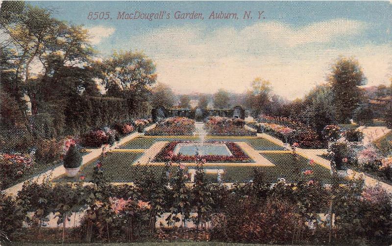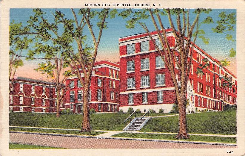 - Post cards: Auburn City Hospital [linen]; “Columbian Rope Co,” c.1910; “Cayuga County Court House” [chrome]; “Auburn Academic High School” [c.1930] “Presbyterian Theological Seminary” [1916]; “Prison Gates” [c.1910]; “Seward House”[chrome]; “Seward Park and Memorial” [c.1930]; “Owasco Outlet” [1908]; “Owasco Lake Park” [c.1910]’ “Macdougall’s Gardens” [c.1910]