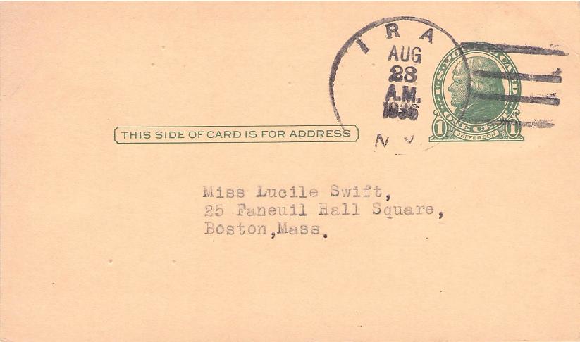 - Ira (1825-1961) 1915 4-bar on post card; 1936 4-bar on Postal Card