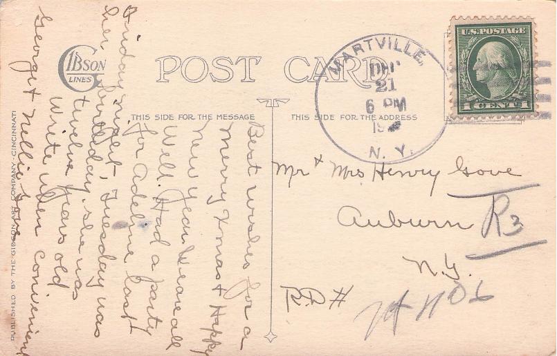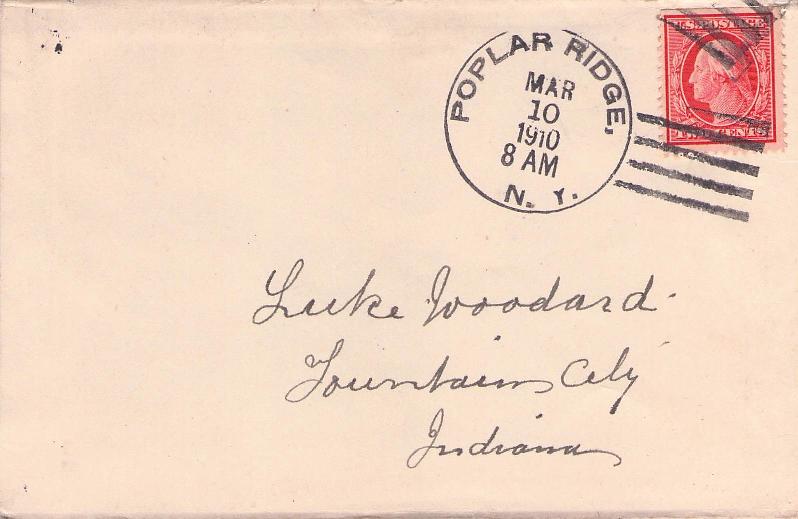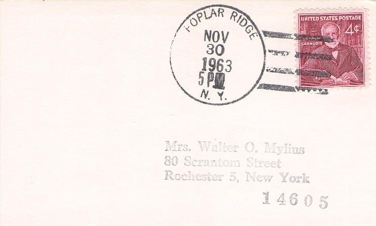 - Poplar Ridge 1910 4-bar on cover; 1936 4-bar on post card; 1963 4-bar on 3x5 card