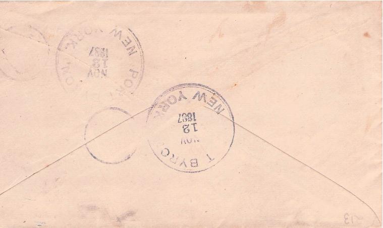 - Port Byron 2 poor 1887 backstamps on cover; 1971 machine cancel on cover