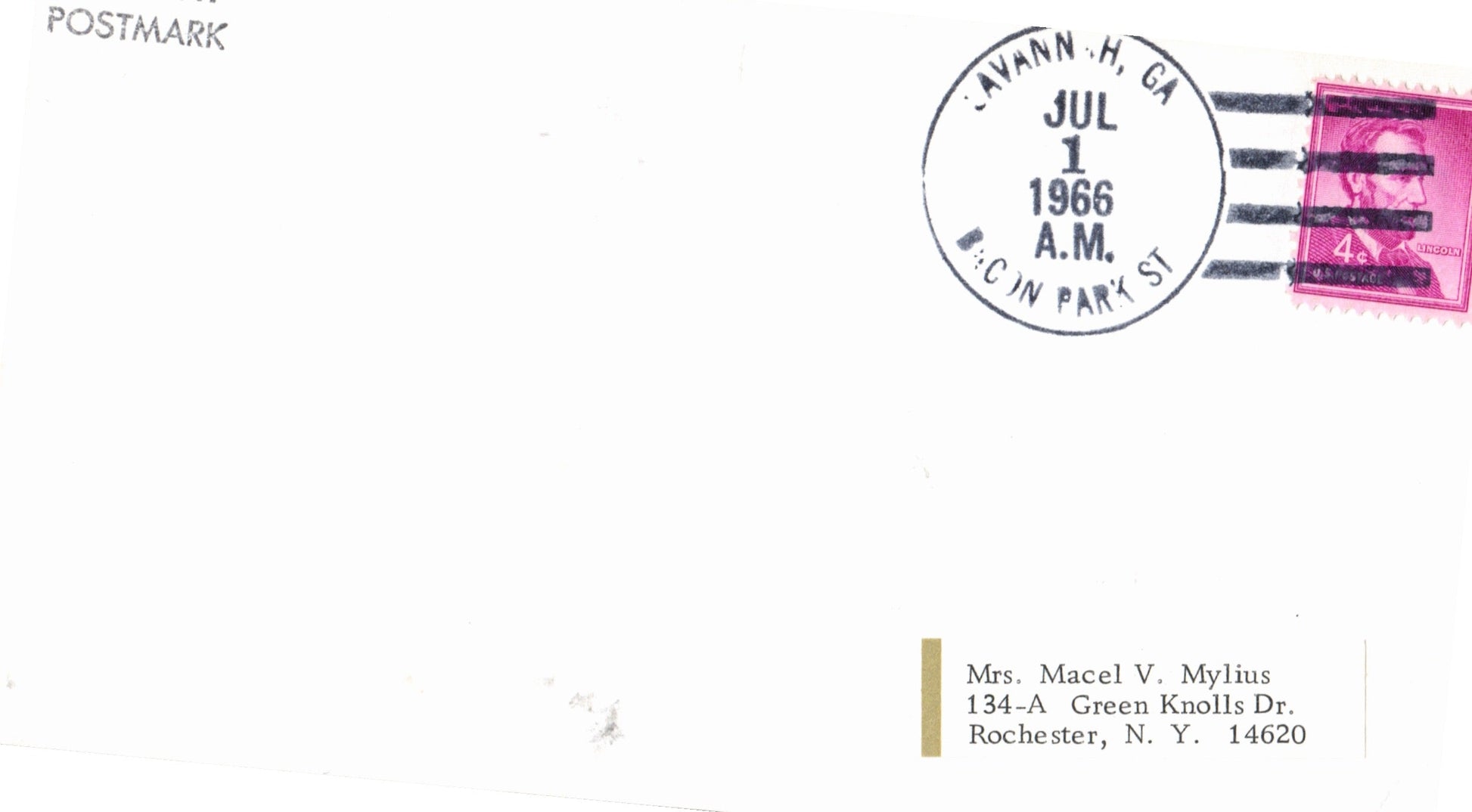 Bacon Park S 1966 4-bar on FD cover-sized card