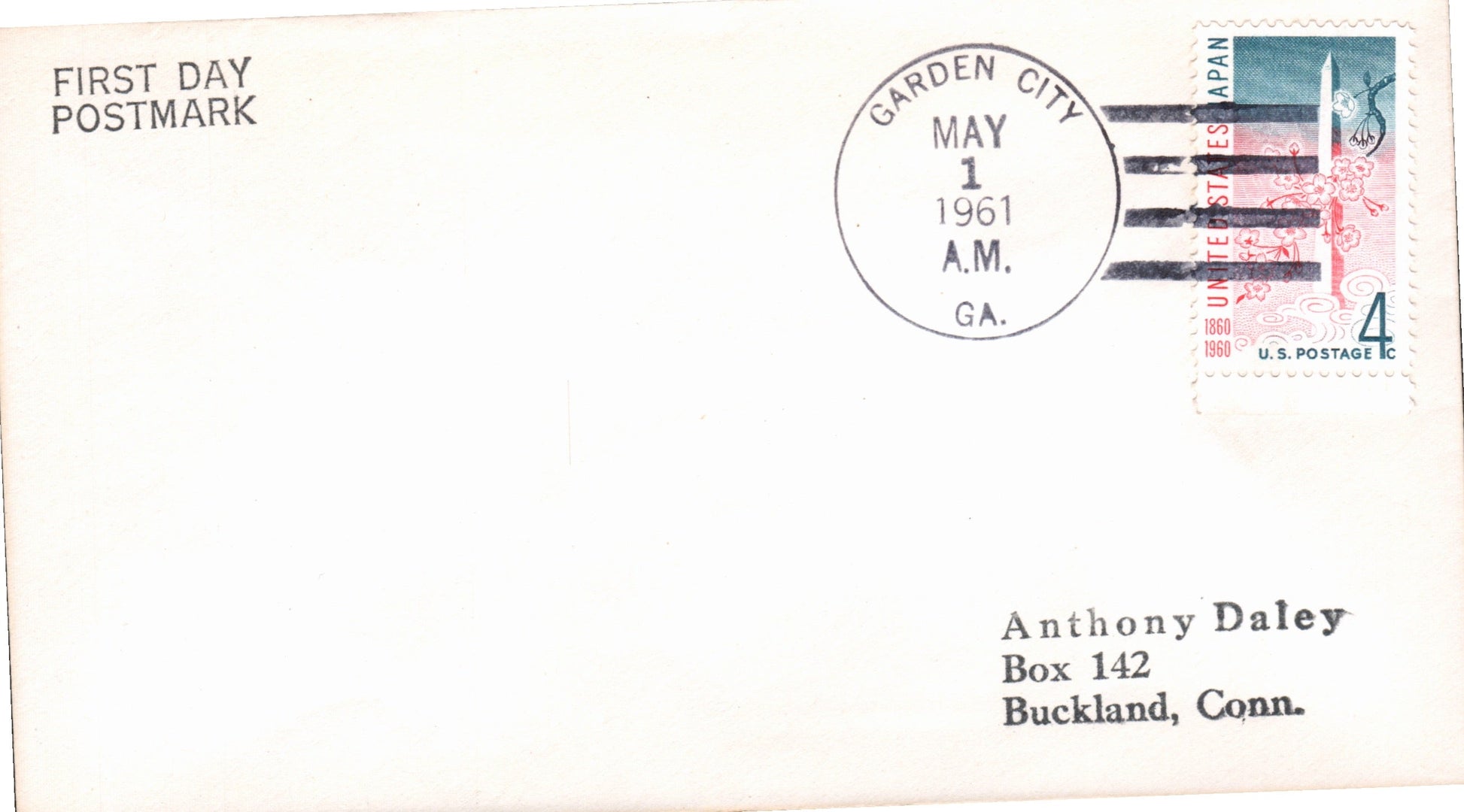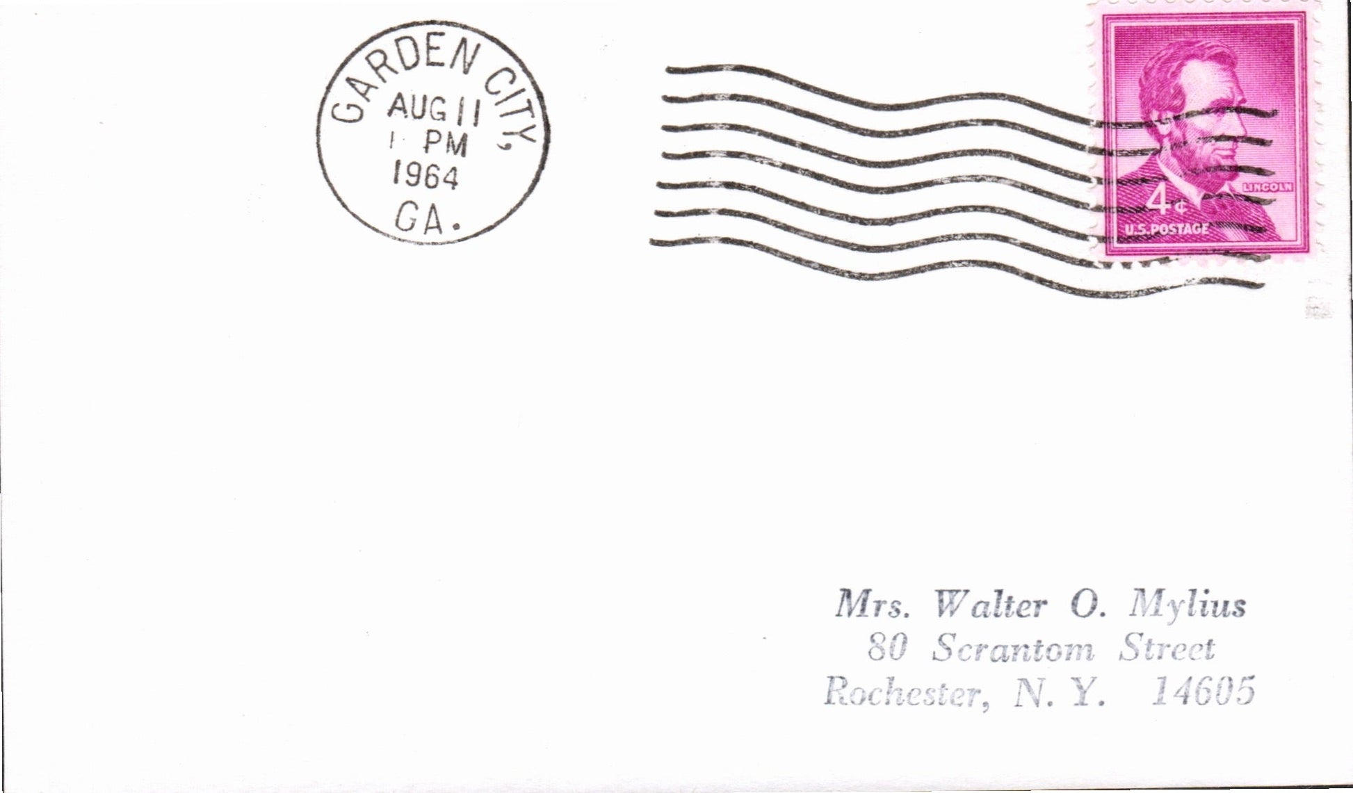 Garden City B 1961 4-bar on cover, FD f Branch; 1964 machine cancel on 3x5 card