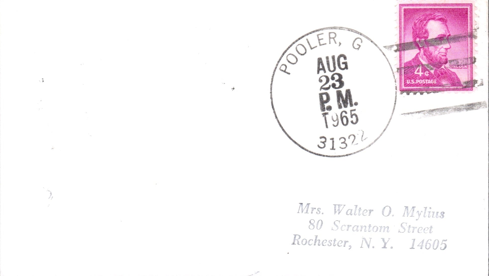 Pooler 1965 4-bar on 3x5 card, round dater on back