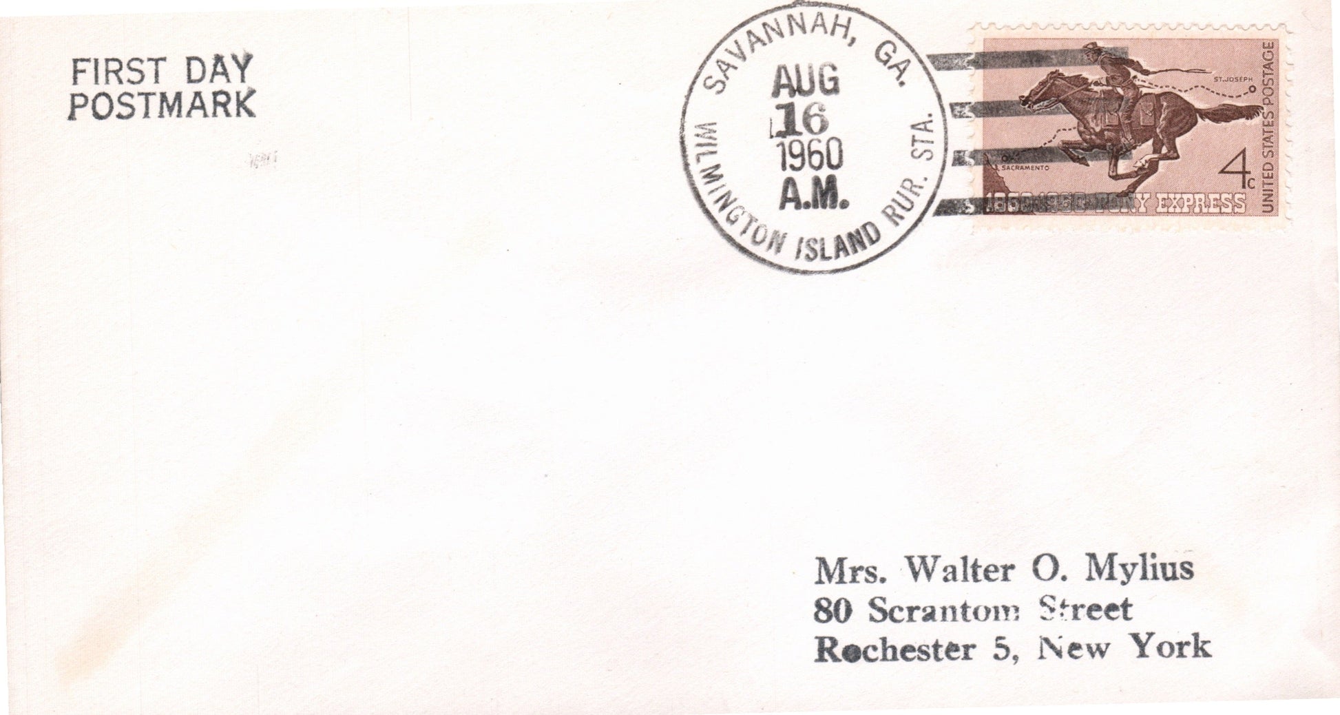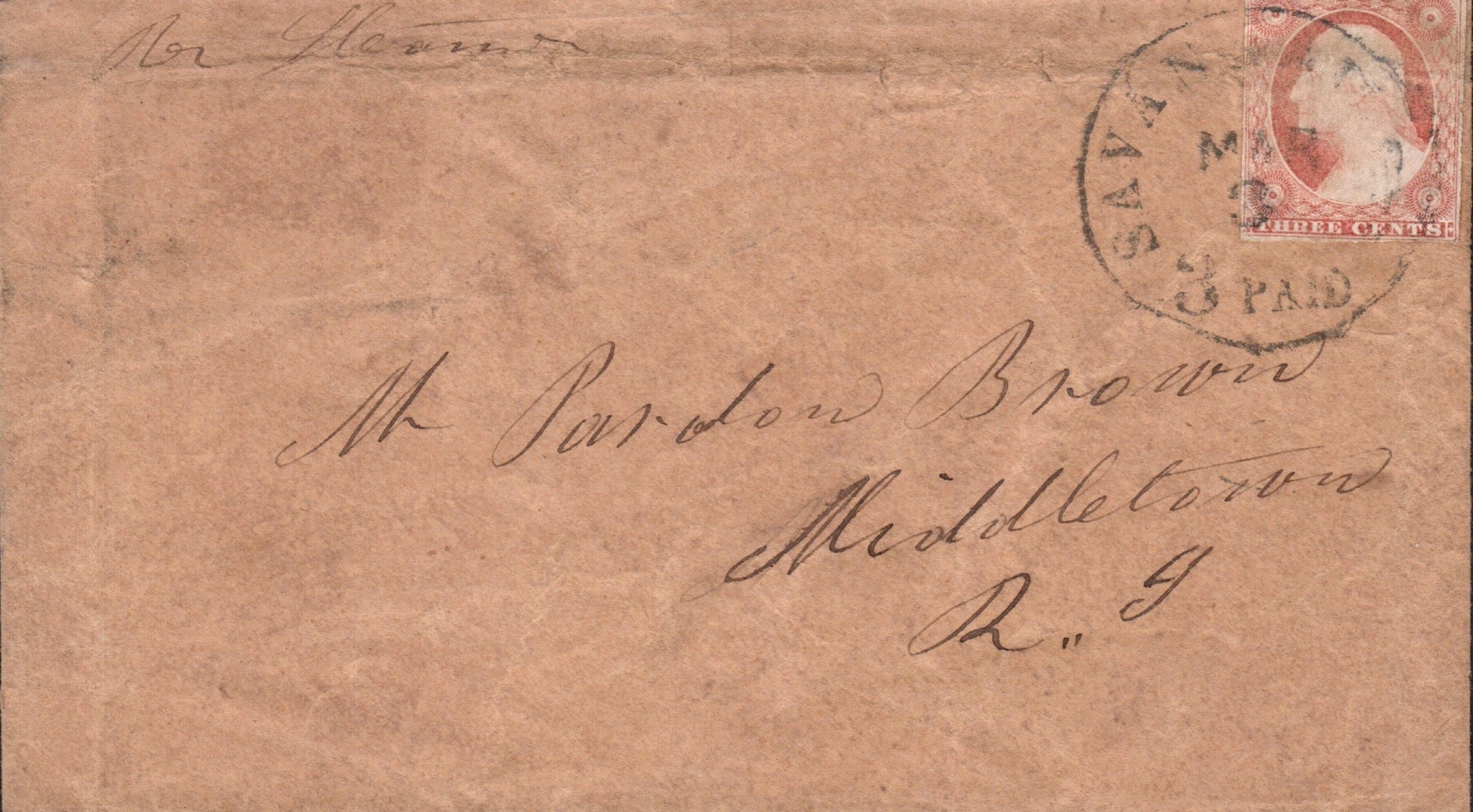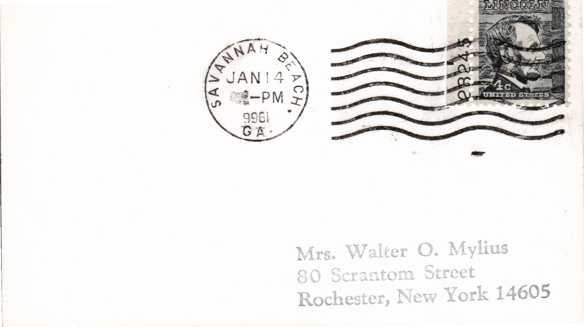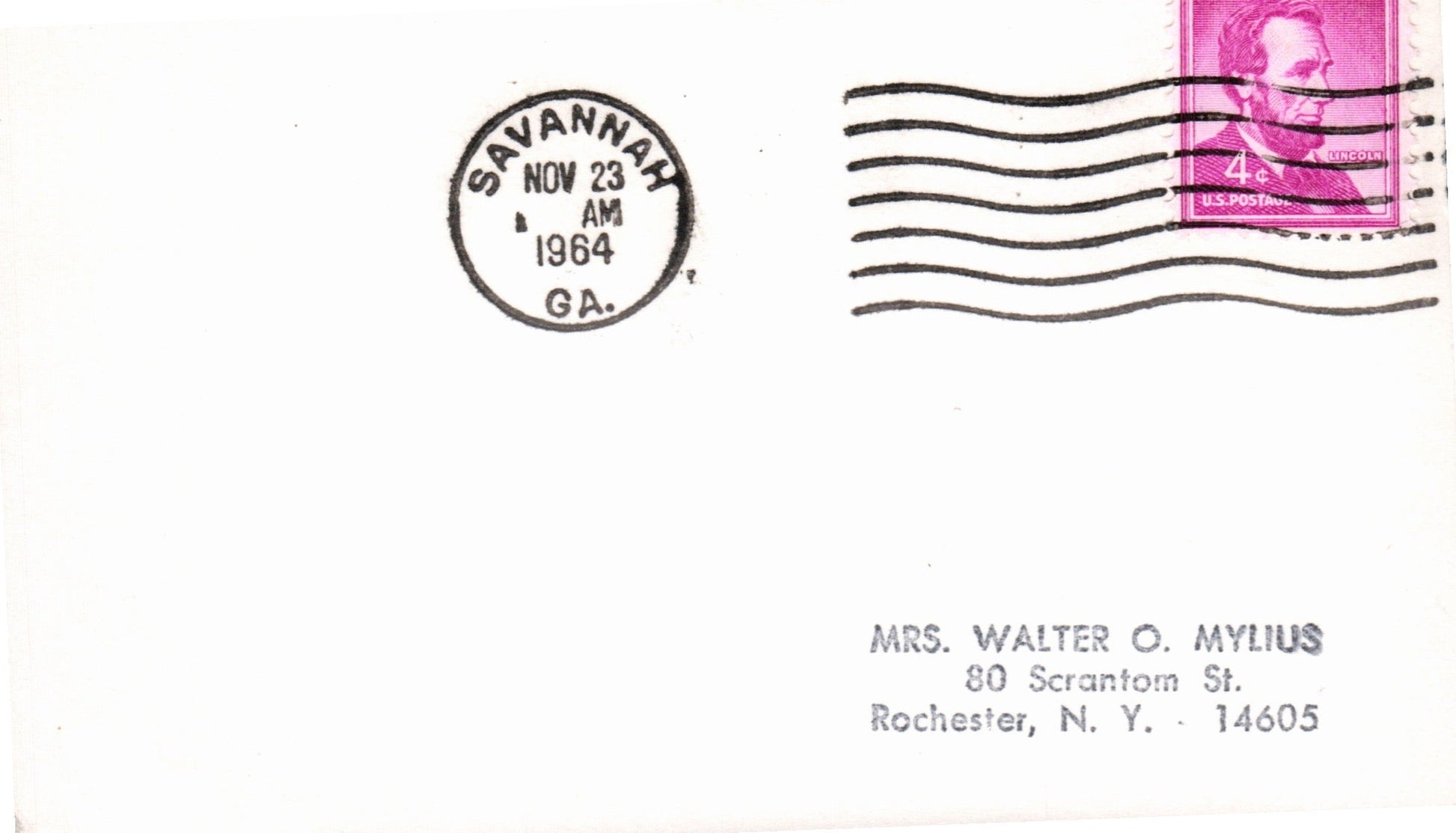 Savannah c.1850s cds “3 PAID” in dial on cover to Rhode Island; c.1860s cds “PAID”in dial on cover to Mass.; 1894 cds on cover; 1898 Flag cancel on cover; 1954 machine slogan “Wear Your Red Feather Proudly” on Postal Card; 1964 machine cancel on 3x5 card; 1965 roller on 3x5 card; 1966 machine cancel on 3x5 card, “2” in dial; 1970 machine slogan “Ability Counts” on post card view of Presbyterian church; 1979 4-bar on cacheted cover “Bicentennial Cover The Start of the Savannah Siege”