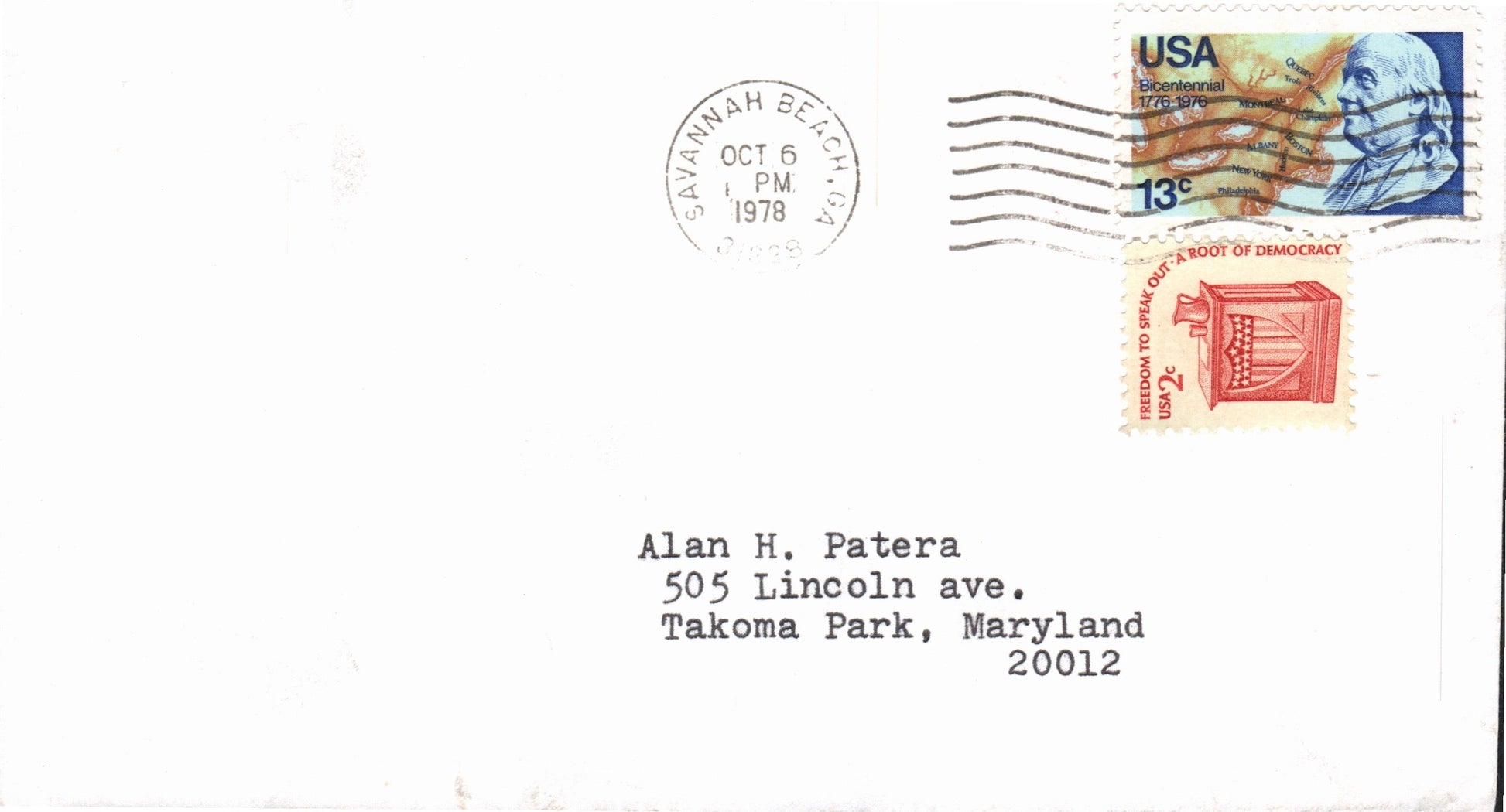 Savannah Beach 1966 machine cancel on 3x5 card; 1978 machine cancel on cover