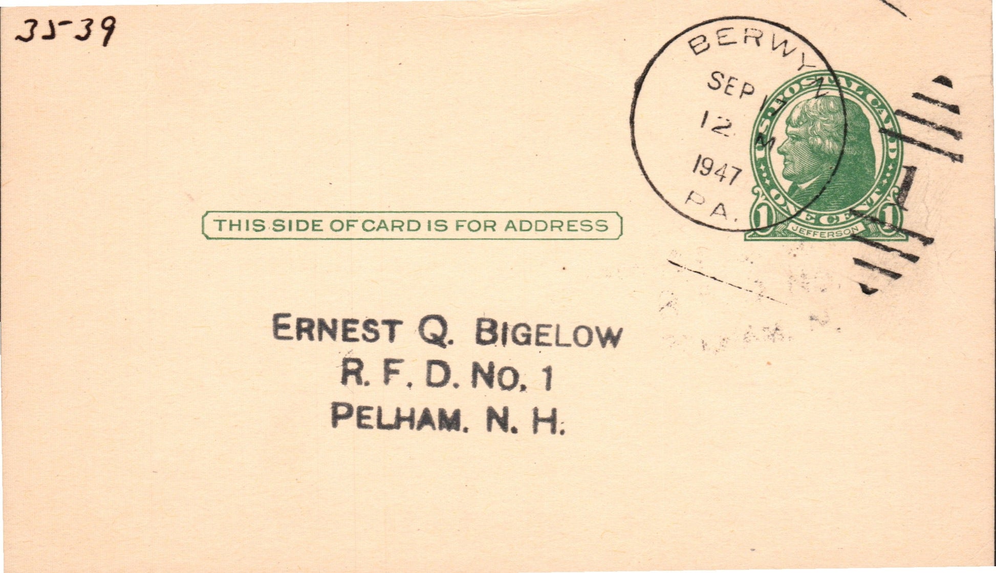 Warwick (1868-1935) 1910 Doane on post card; 1915 4-bar on post card