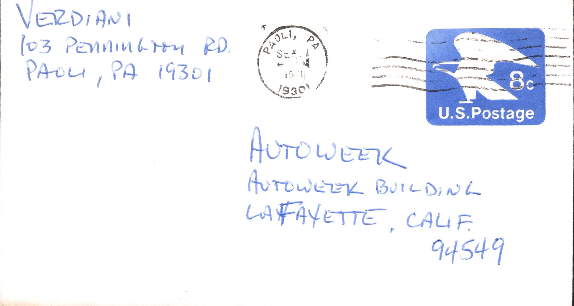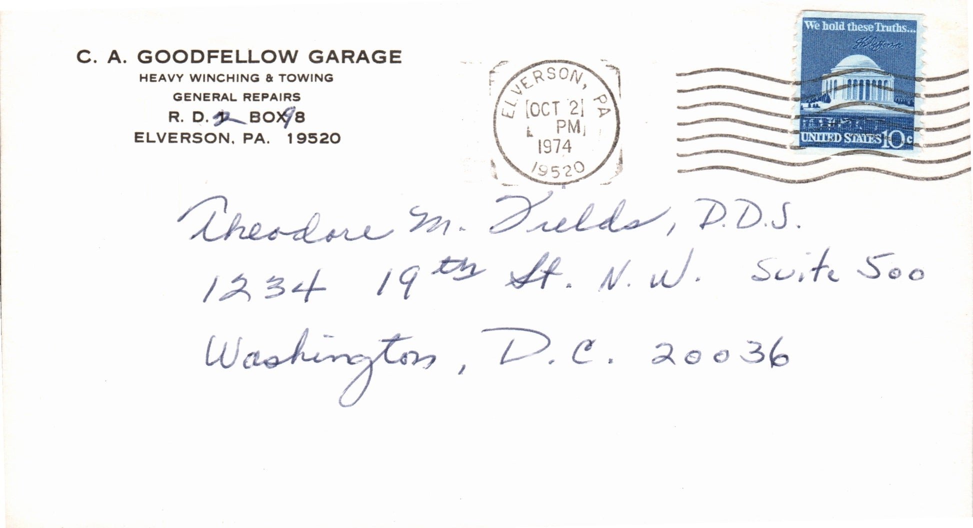 Elverson 1974 machine cancel, Goodfellow Garage corner