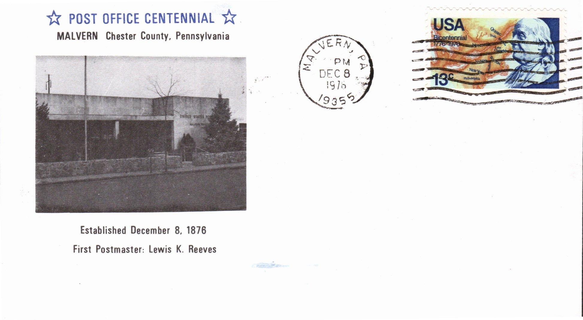 Malvern 1976 machine cancel on cached cover, 100 years of post office