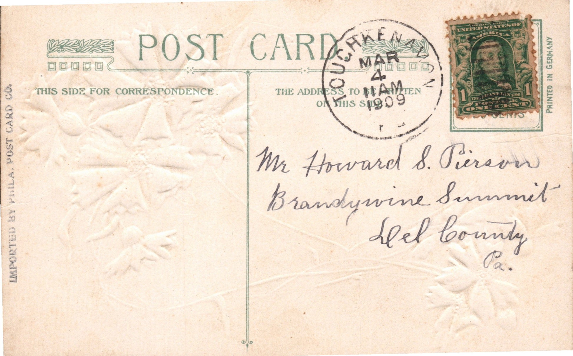 Brandywine Post cards: Washington’s Headquarters (c.1930); Covered bridge at Jeffers Pond (corner chewed) [1908]