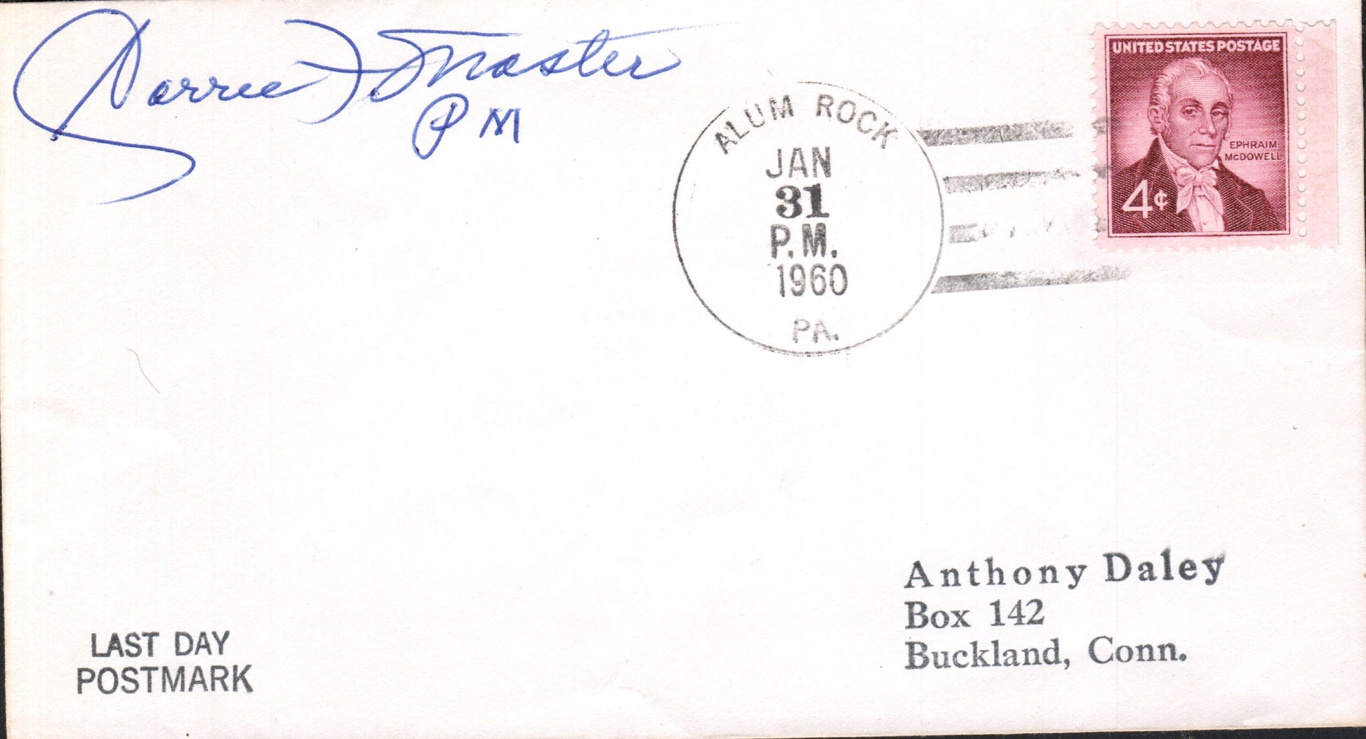 Alum Rock (1862-1960) 1960 4-bar on LD cover, PM autograph
