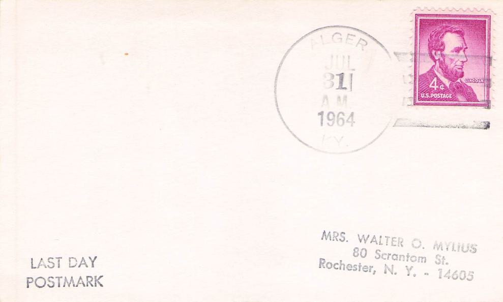 Alger (1900-1964) 1964 4-bar on 3x5 card