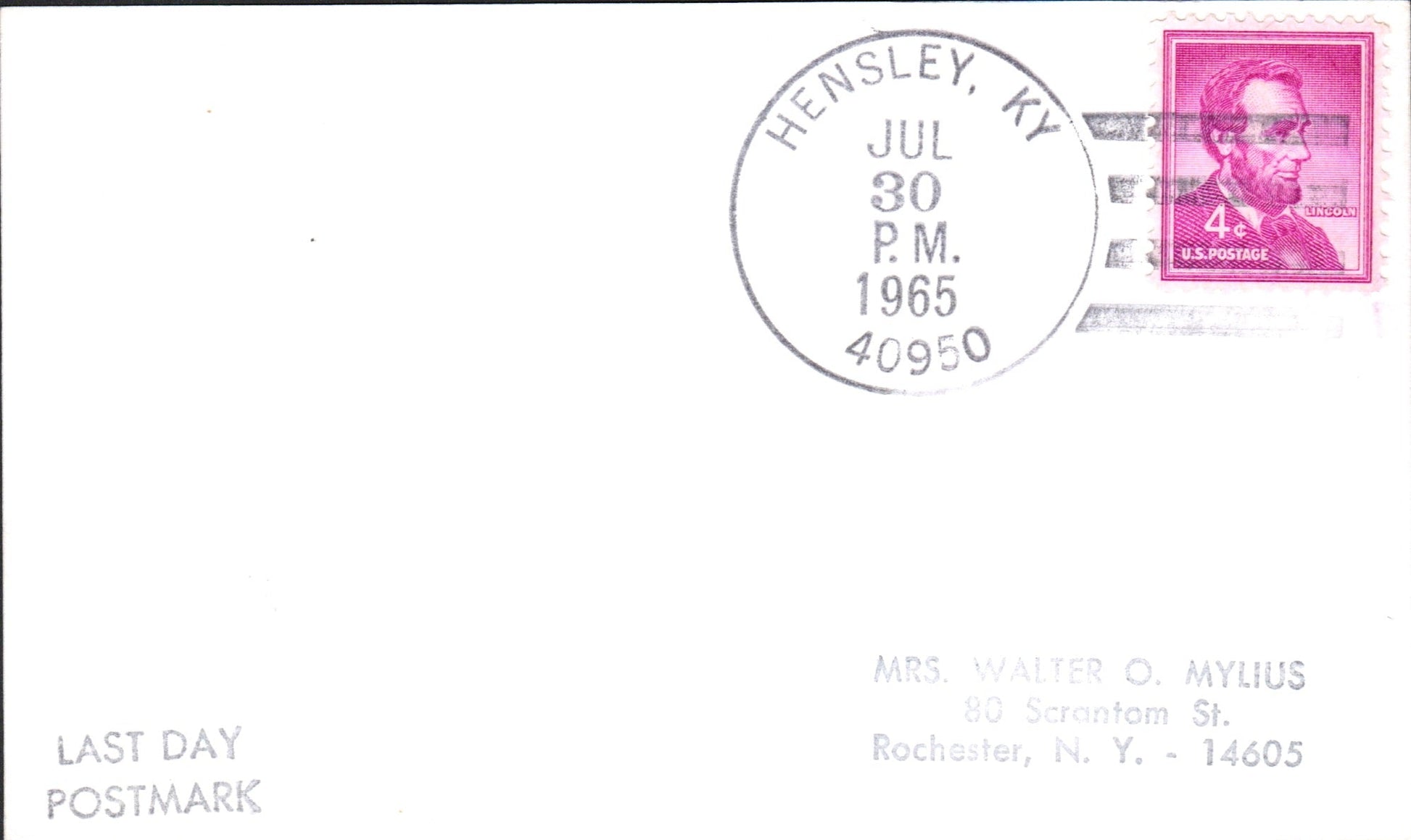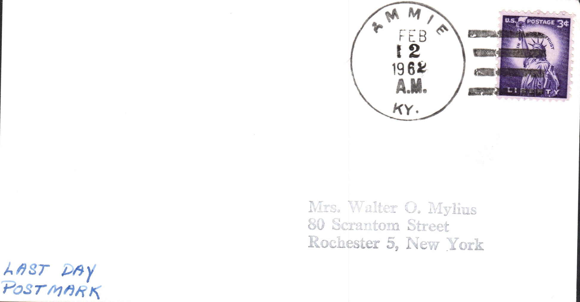 Ammie (1881-1962) 1962 4-bar on LD cover-sized card