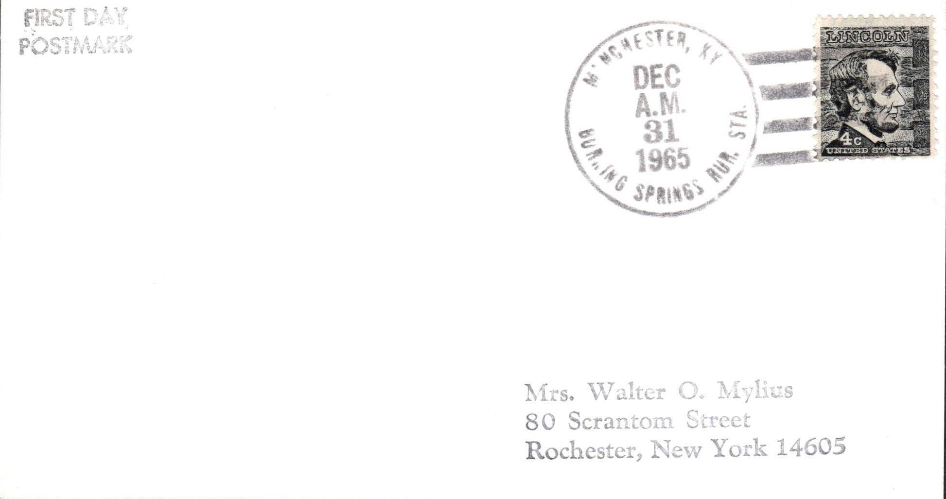 Boiling Springs RS 1965 4-bar on FD (of postal status) on cover-sized card