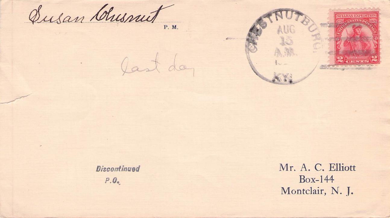Chestnutburg 1937 4-bar on LD cover, PM autograph (Susan Chestnut)