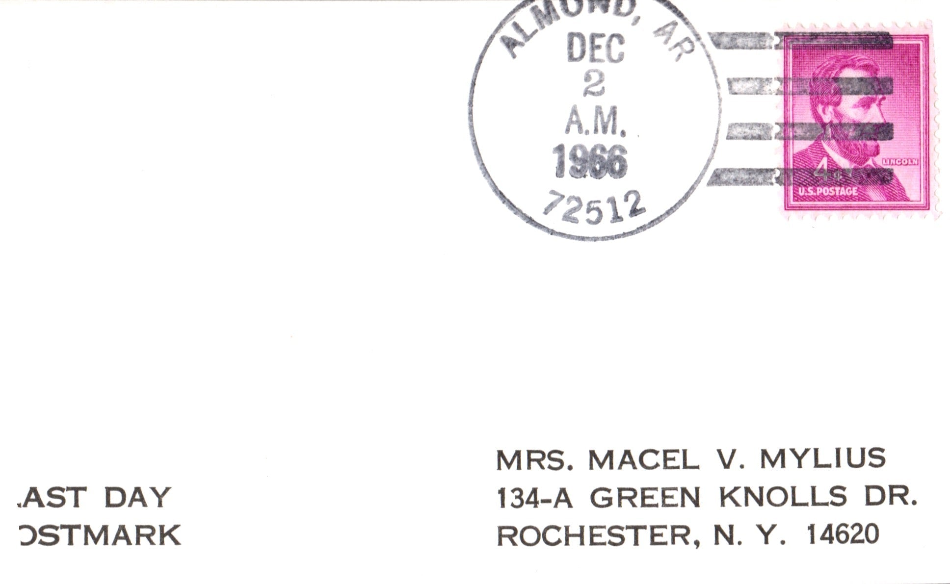 Almond (1879-1966) 1966 4-bar very slightly off top of LD 3x5 card