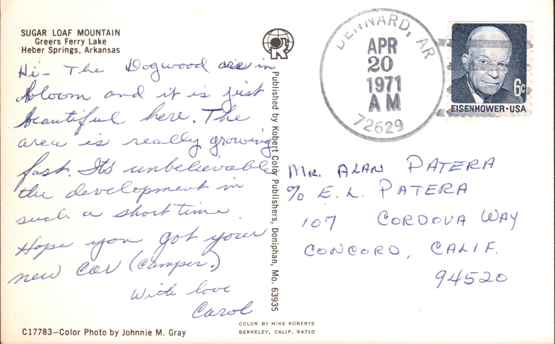 Dennard 1971 4-bar on post card, Greers Ferry Lake
