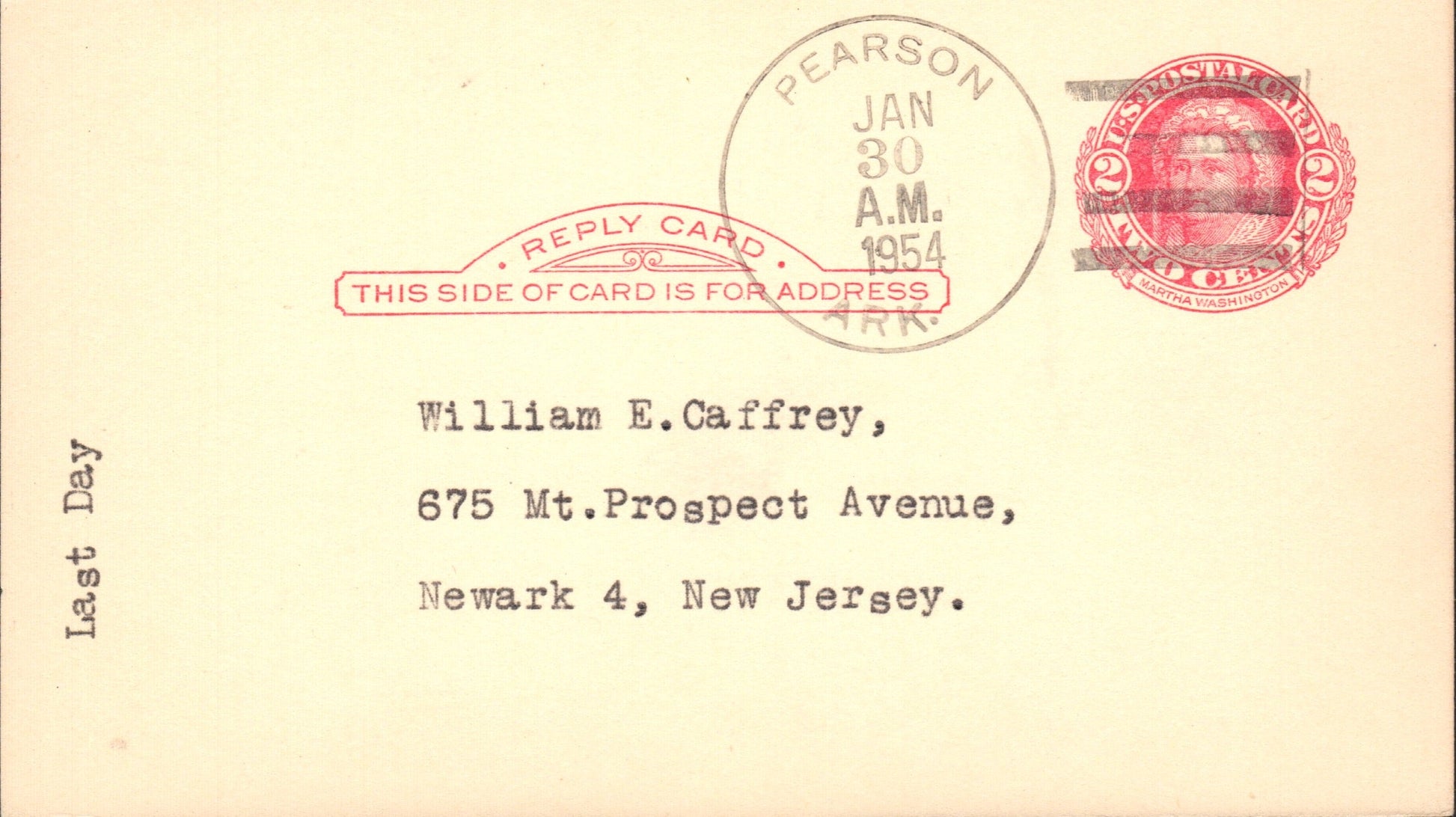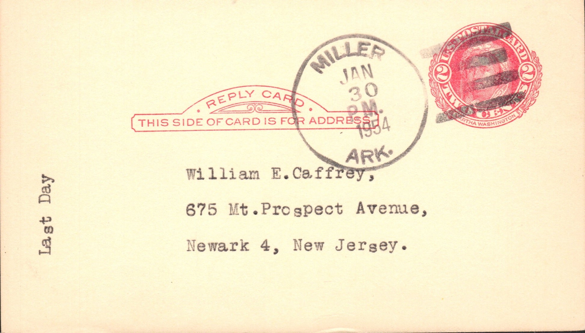 Miller (1907-1954) 1954 4-bar on LD Postal Card,