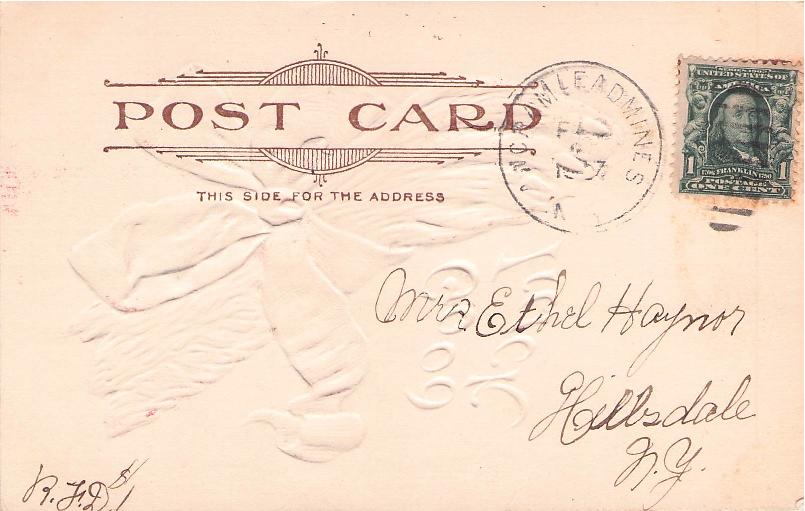 Stuyvesant Falls 1907 Doane 4 as receiving mark on post card