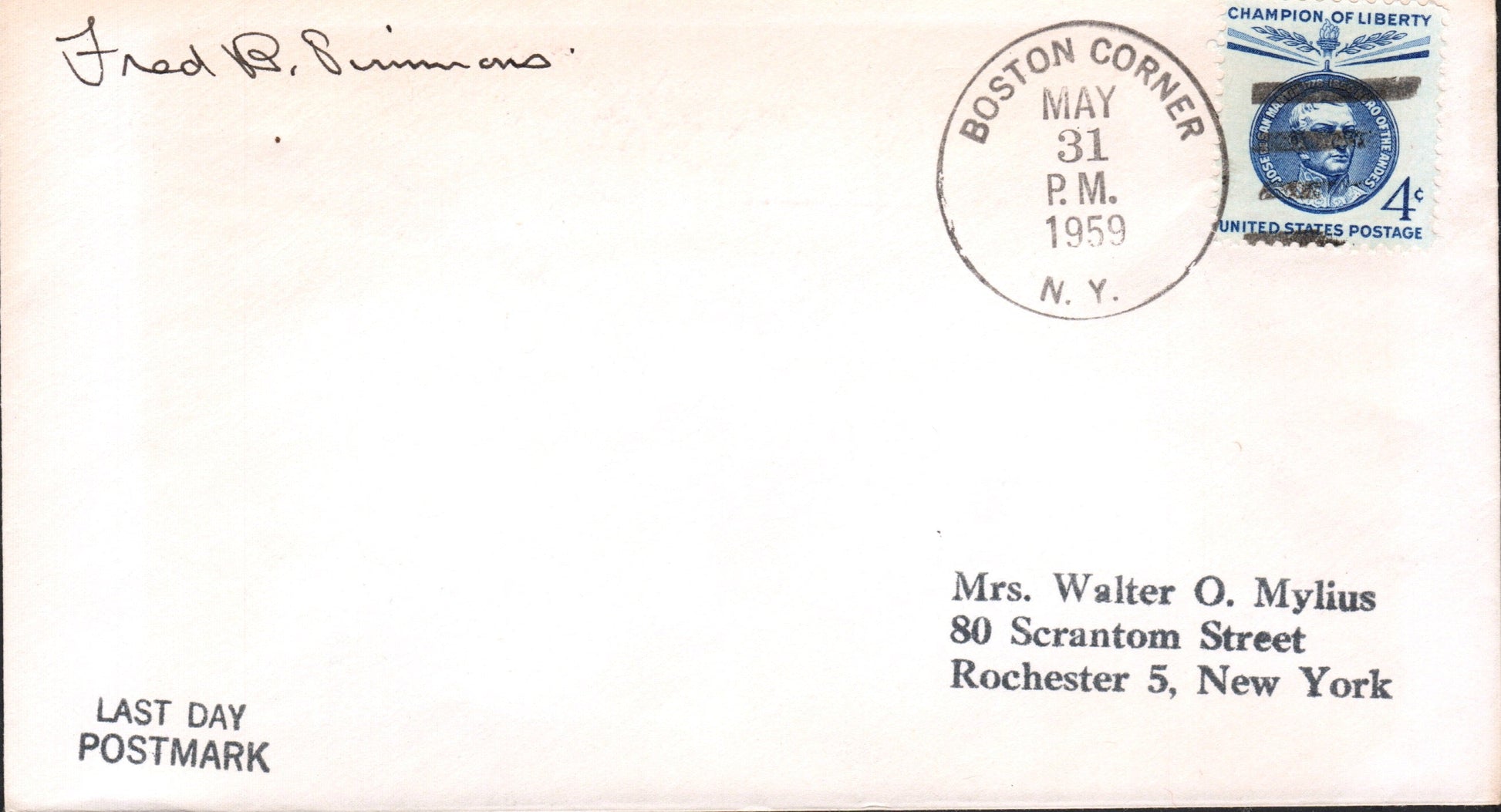 Boston Corner (1861-1959) 1959 4-bar on Last Day cover, PM autograph