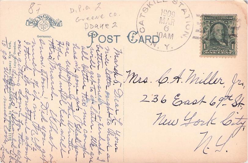 Catskill Station (1867-1910) 1909 4-bar slightly off top of post card