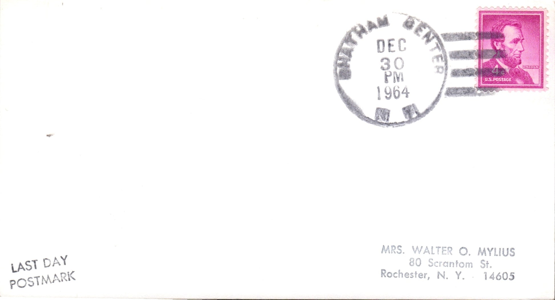 Chatham Center (1835-1964) 1910 Doane 3 on post card; 1964 4-bar on LD cover-sized card