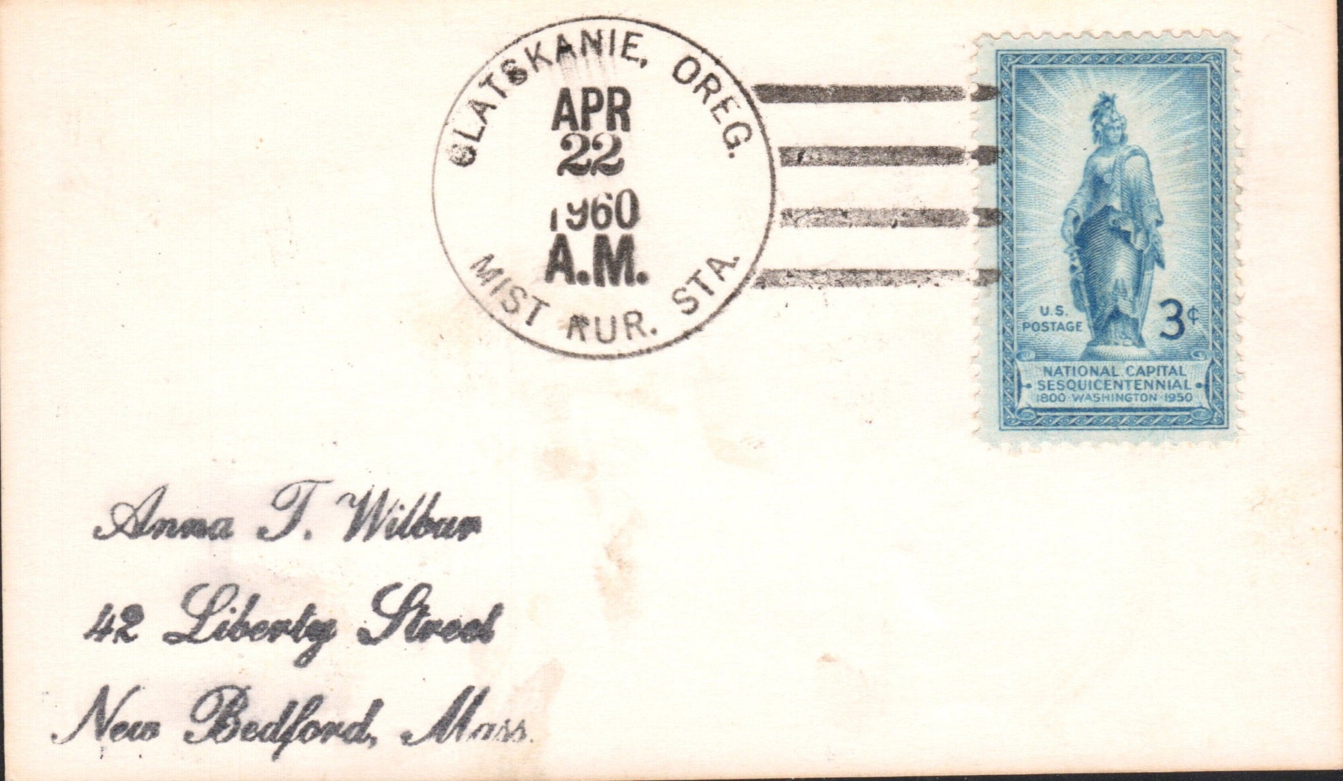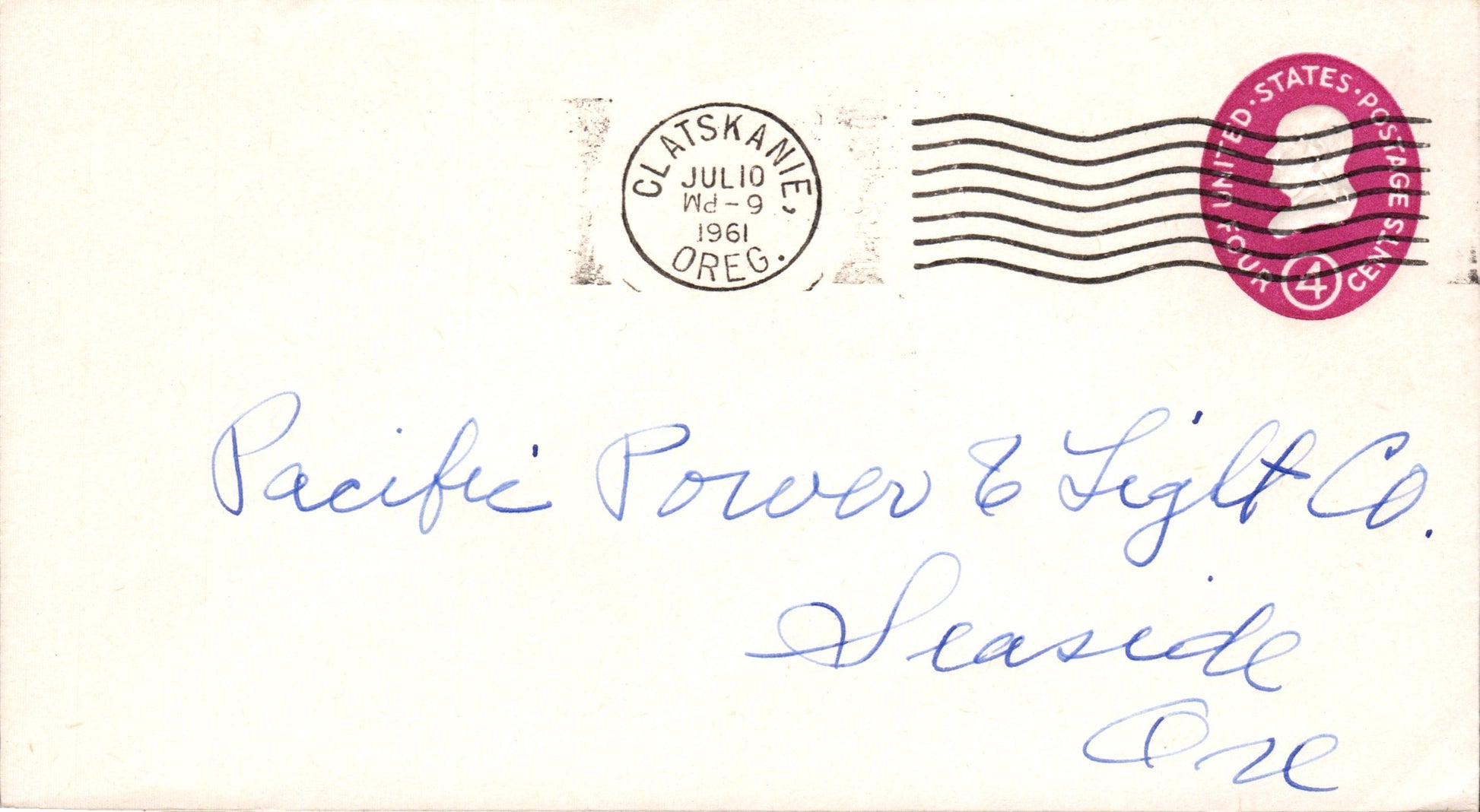 Clatskanie 1952 machine cancel on cover, “F. Hauser Lumber Co.” corner & cachet; 1961 machine cancel on cover; 1976 machine cancel on cover