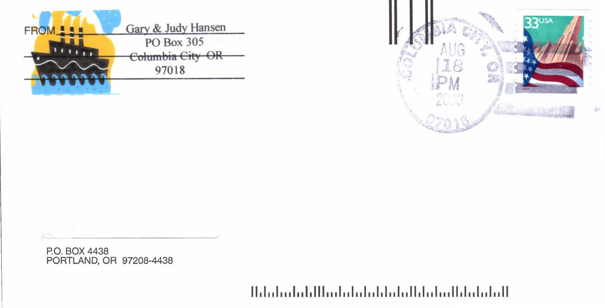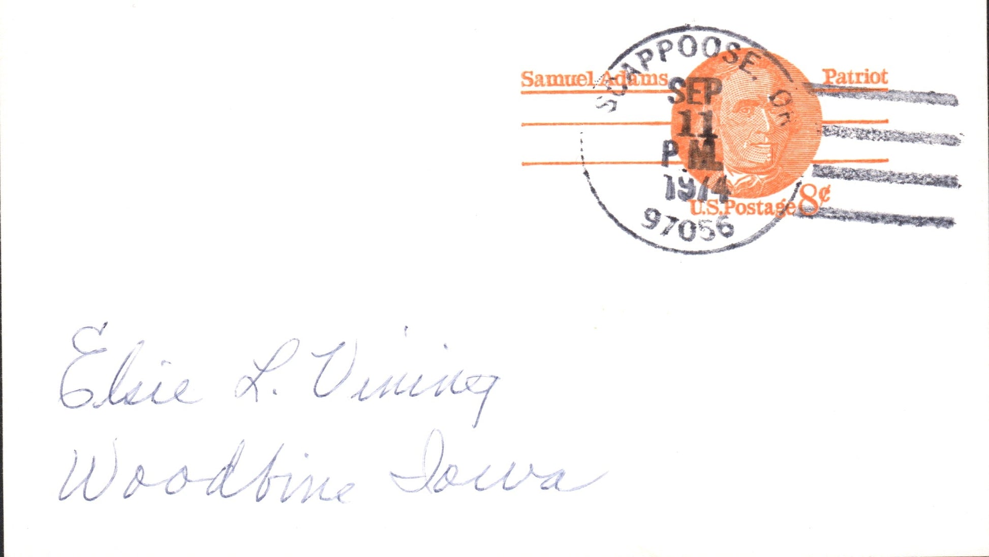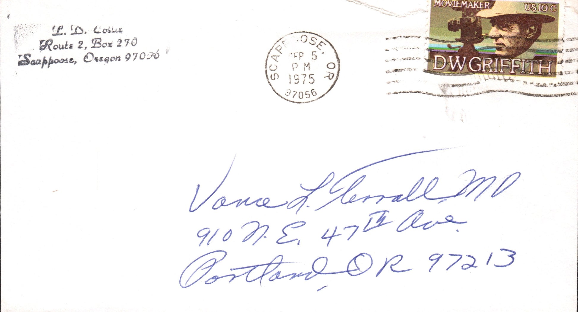 Scappoose 194? duplex on cover; 1974 4-bar on cover; 1975 machine cancel on cover