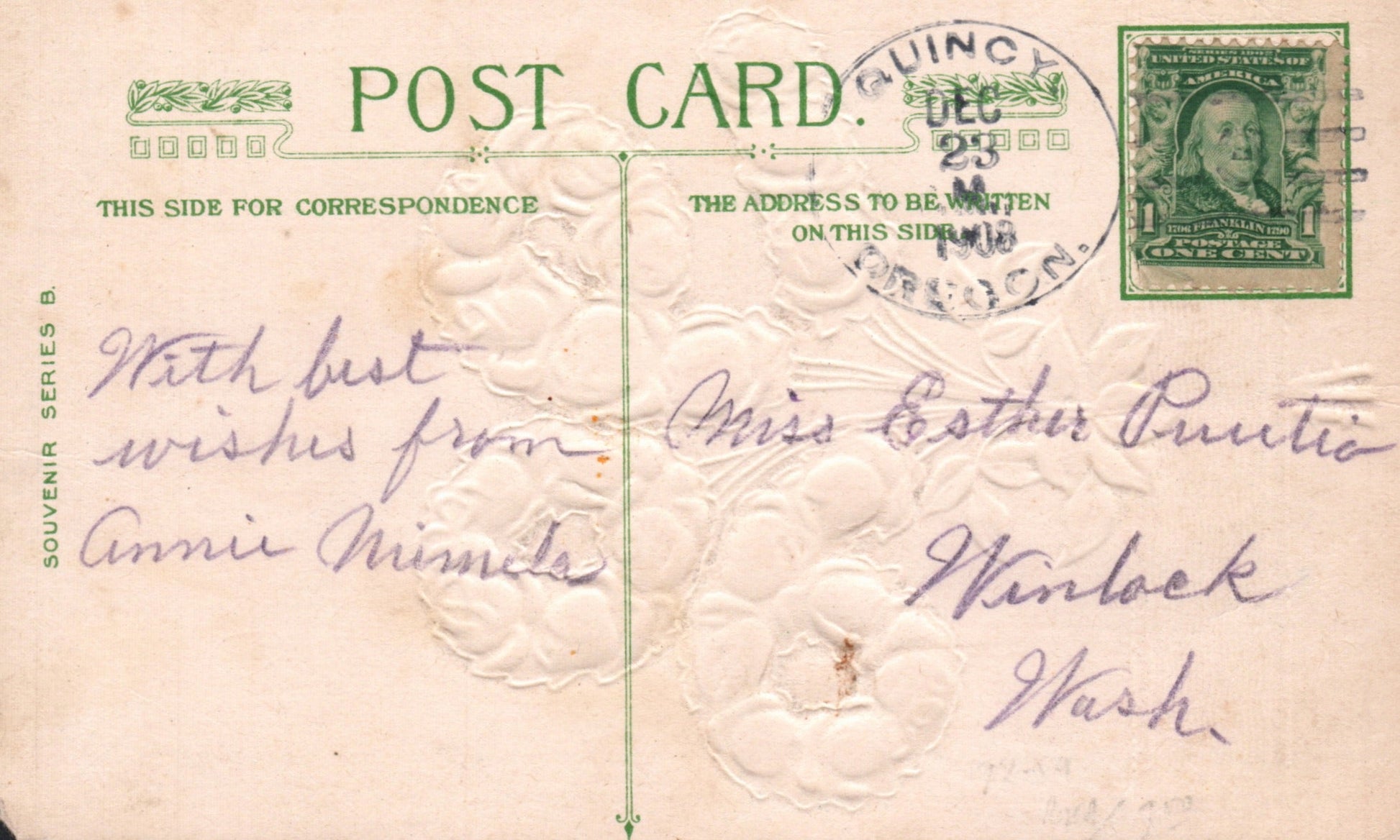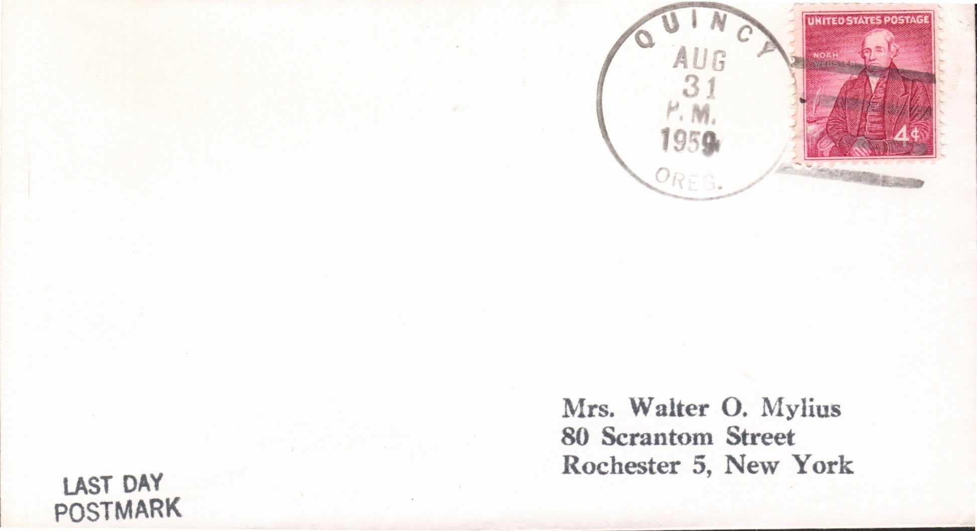 Quincy (1892-1959) 1908 4-bar on post card; 1912 4-bar on post card; 1959 4-bar on LD cover