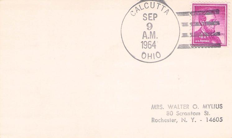 Calcutta B 1964 4-bar on 3x5 card, round dater on back; 1970 4-bar on cover; 1974 machine cancel on cover