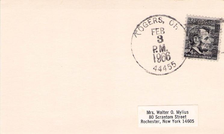 Rogers worthless 1966 4-bar on 3x5 card, “R” penciled in