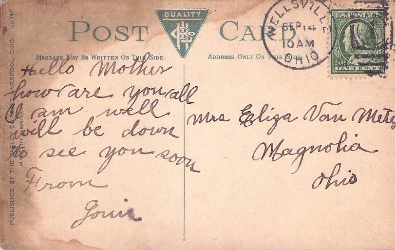 Columbiana 1914 duplex on post card