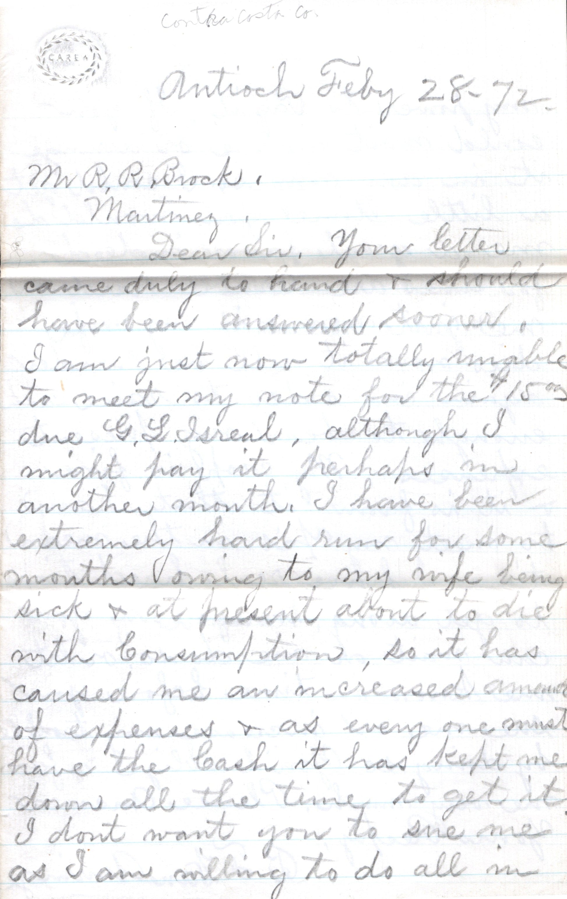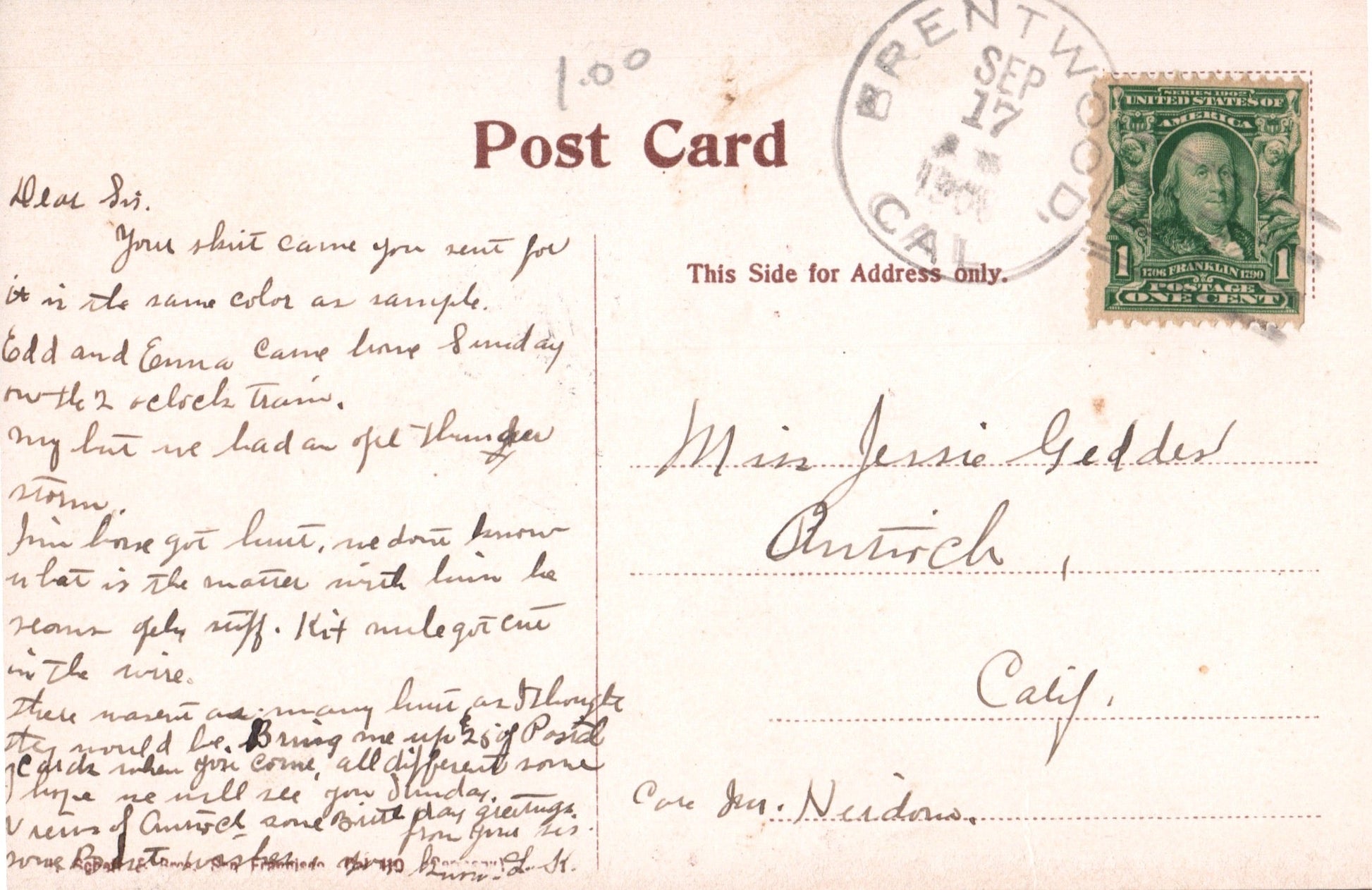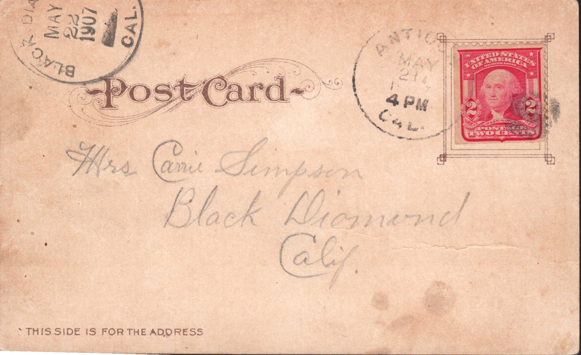 Antioch 1872 double circle on cover with interesting letter; 1907 cds & cork killer on post card; 1948 duplex on 3x5 card
