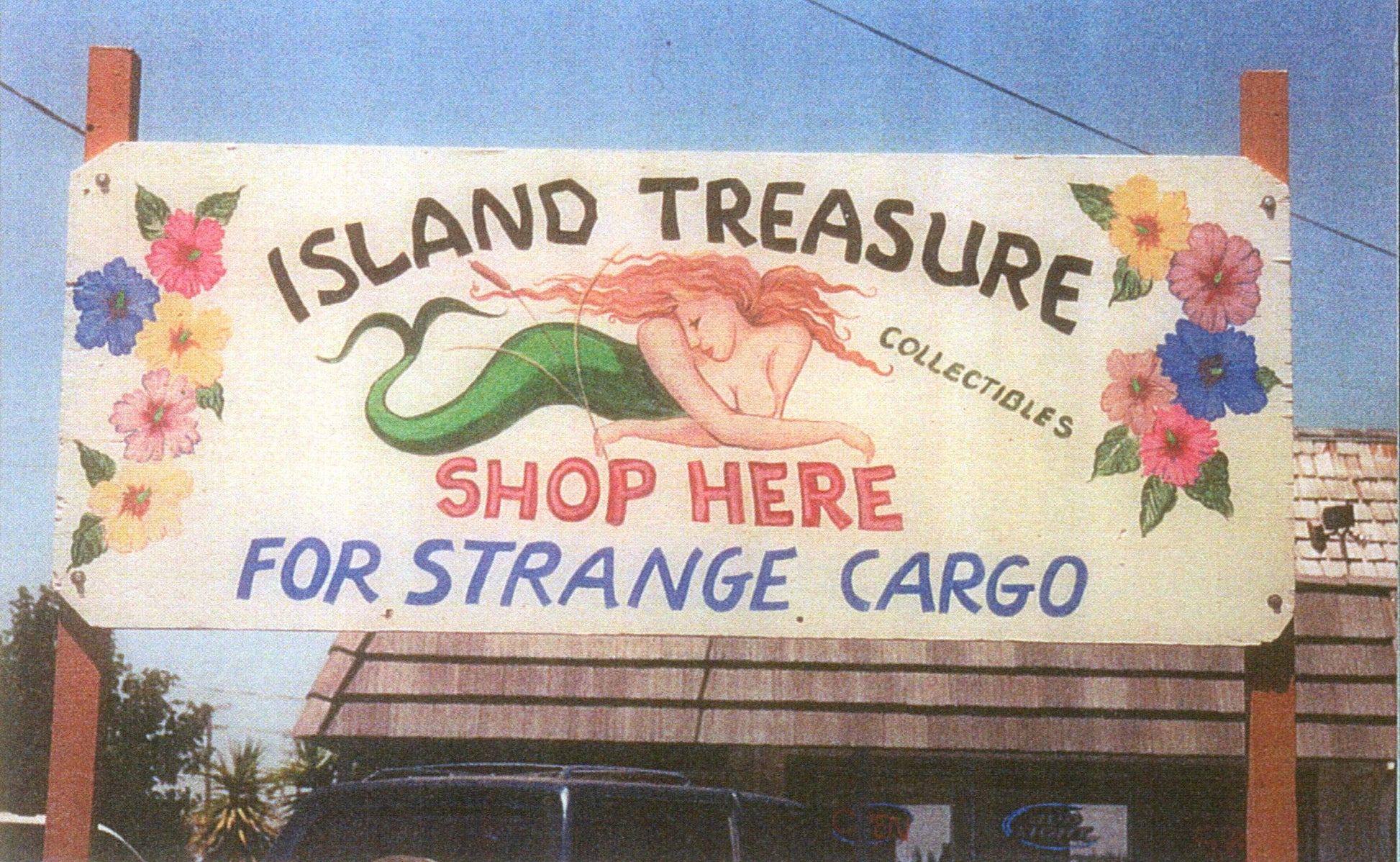 Post cards: Post office [chrome]; Island Salvage and Treasure [chrome]; Island Treasure sign [chrome]