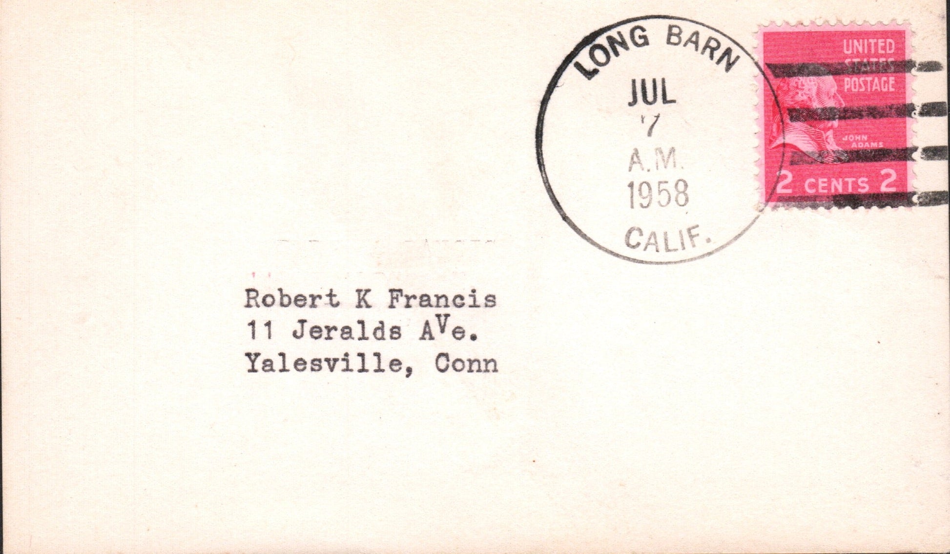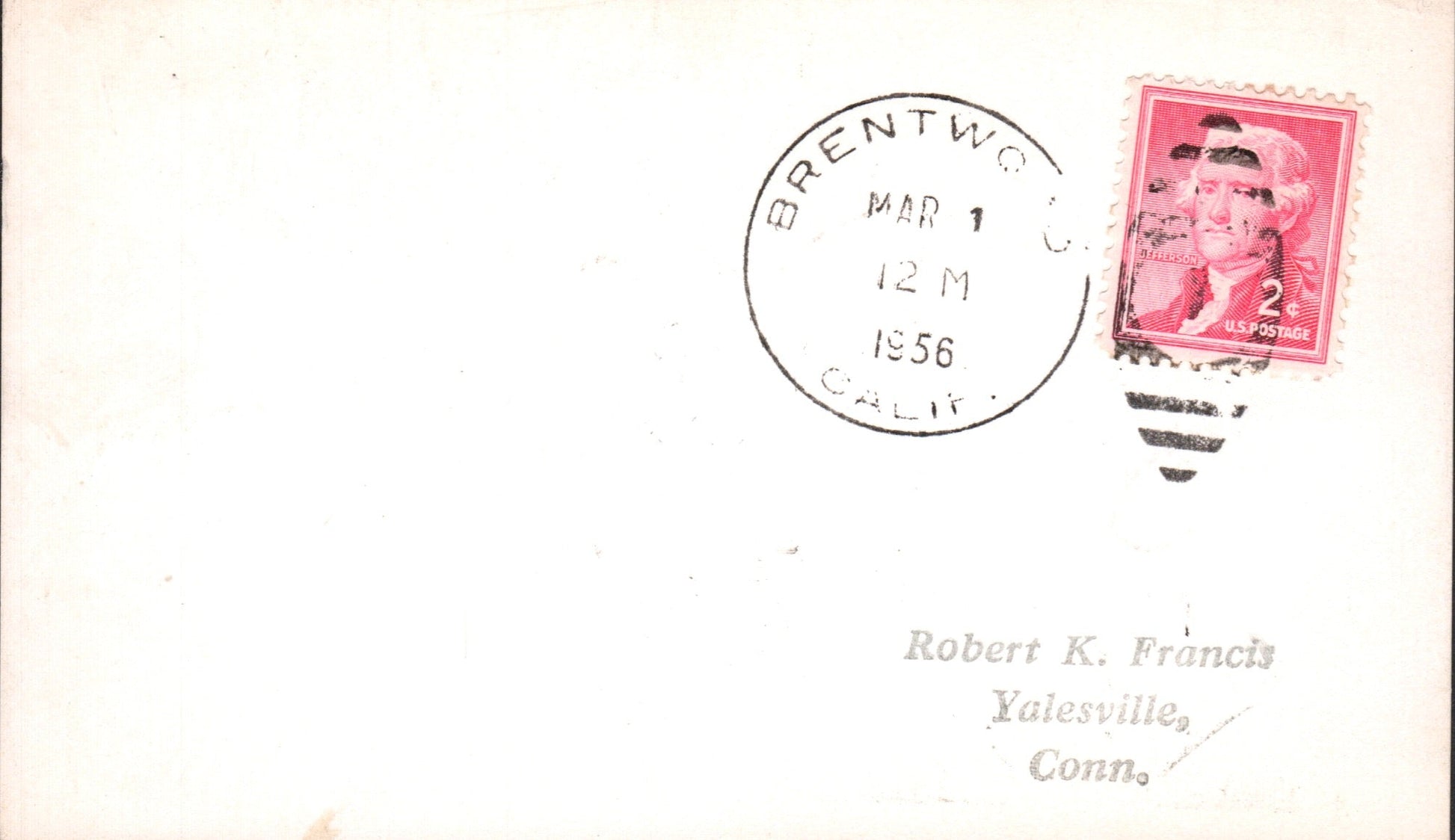 Brentwood 190? Doane on post card; 1956 duplex on 3x5 card; 1960 machine cancel on cover