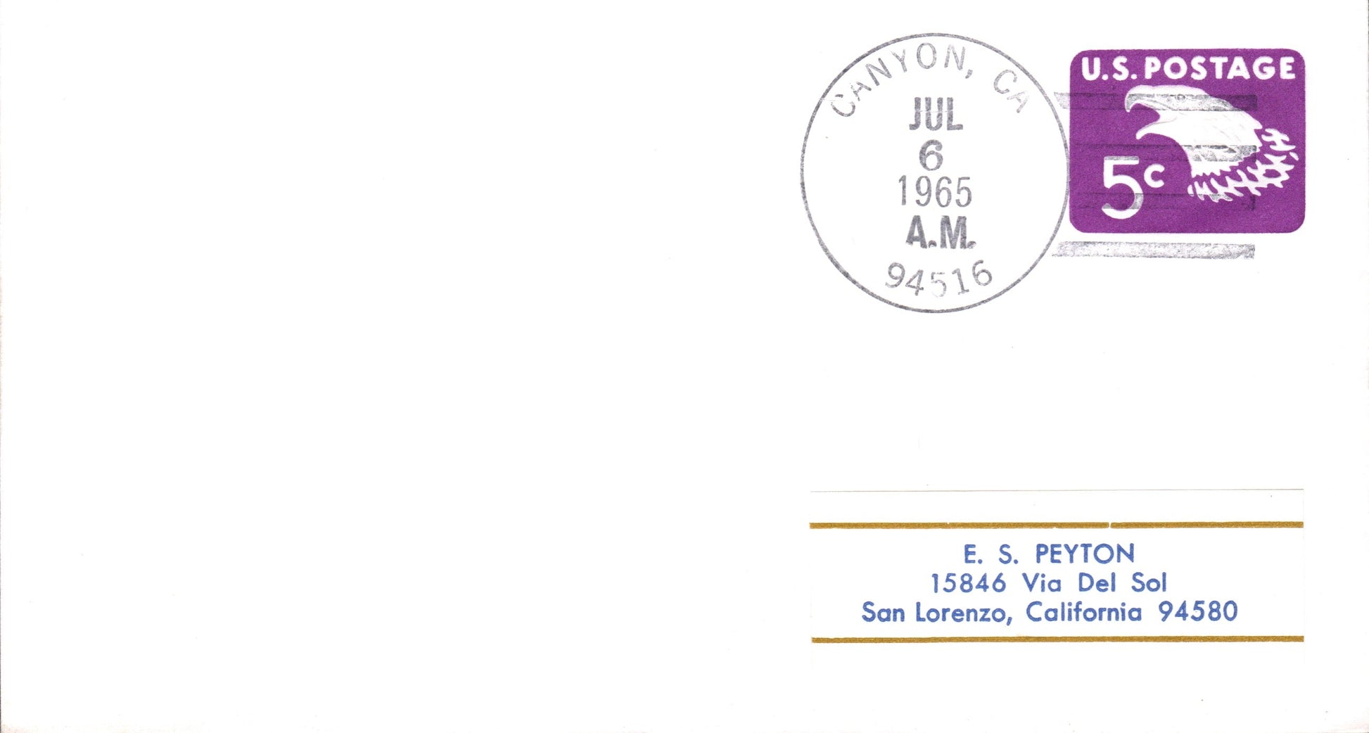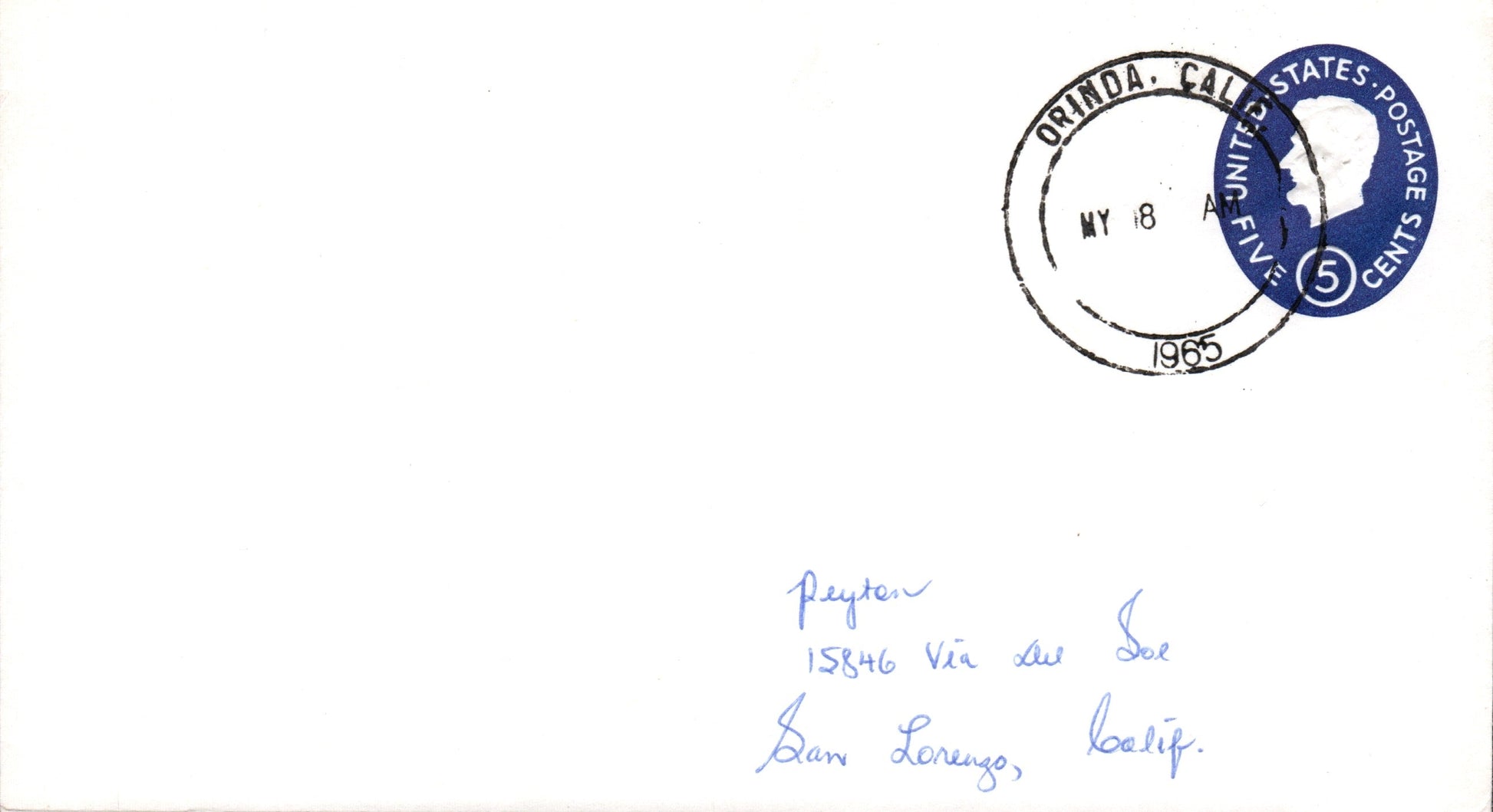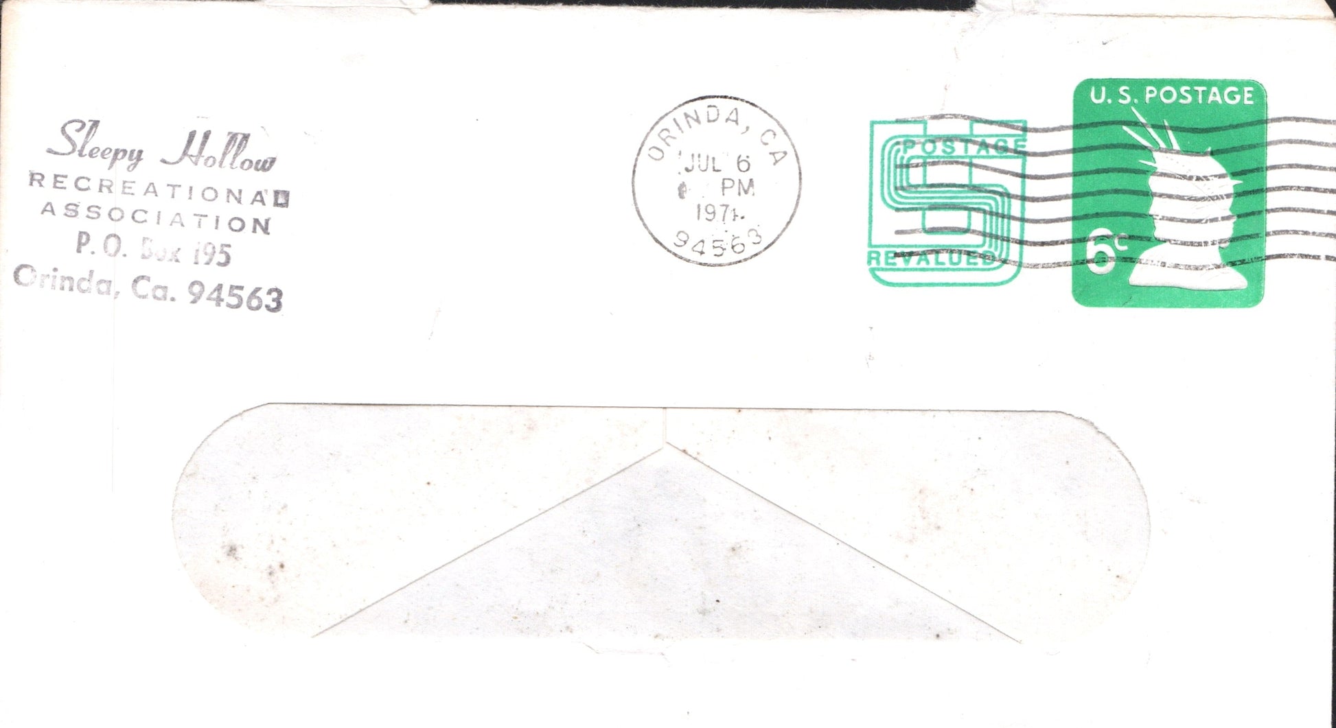 Orinda 1965 double circle on cover; 197? machine cancel on cover with tear