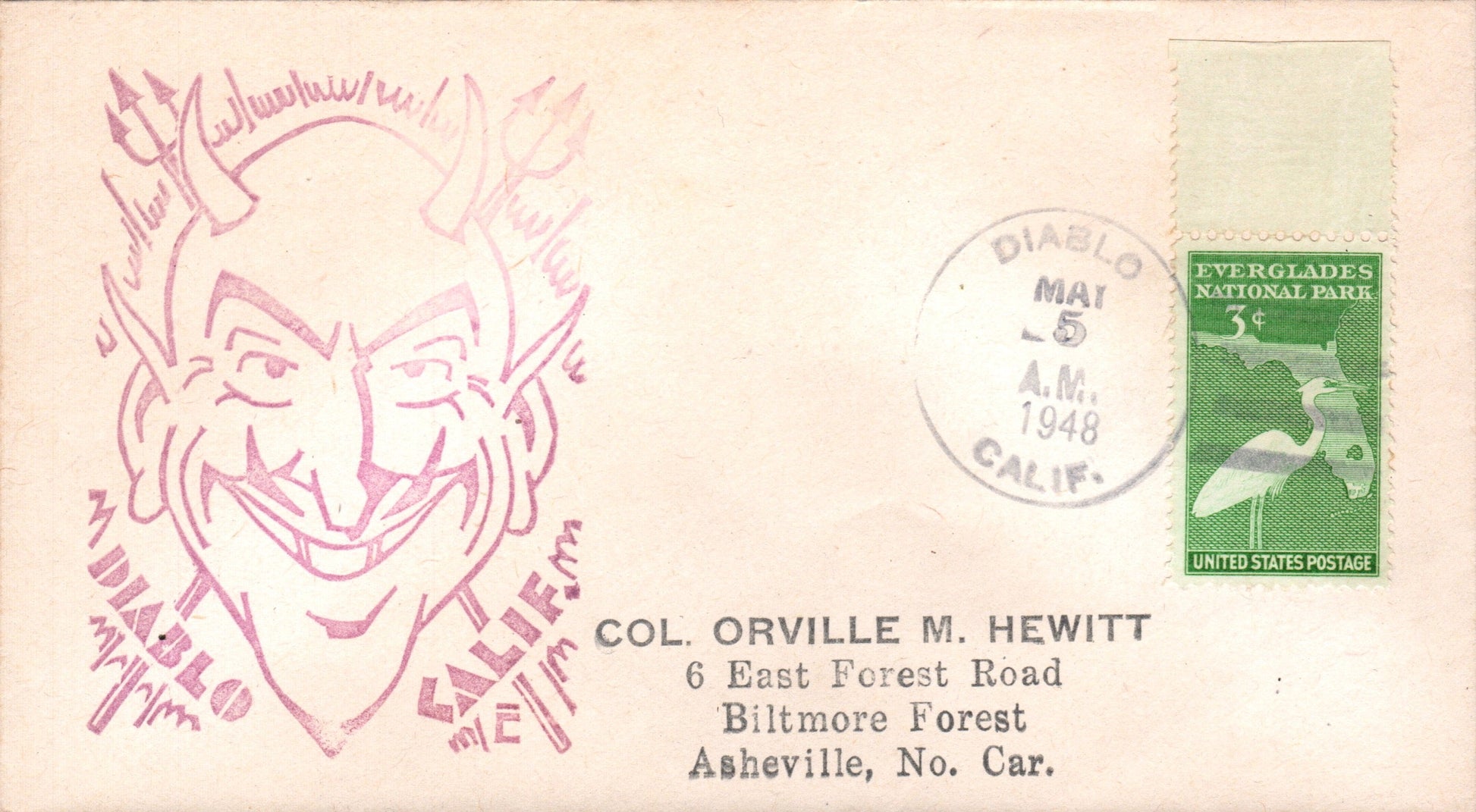 Diablo 1948 4-bar on cacheted cover (face of Devil)