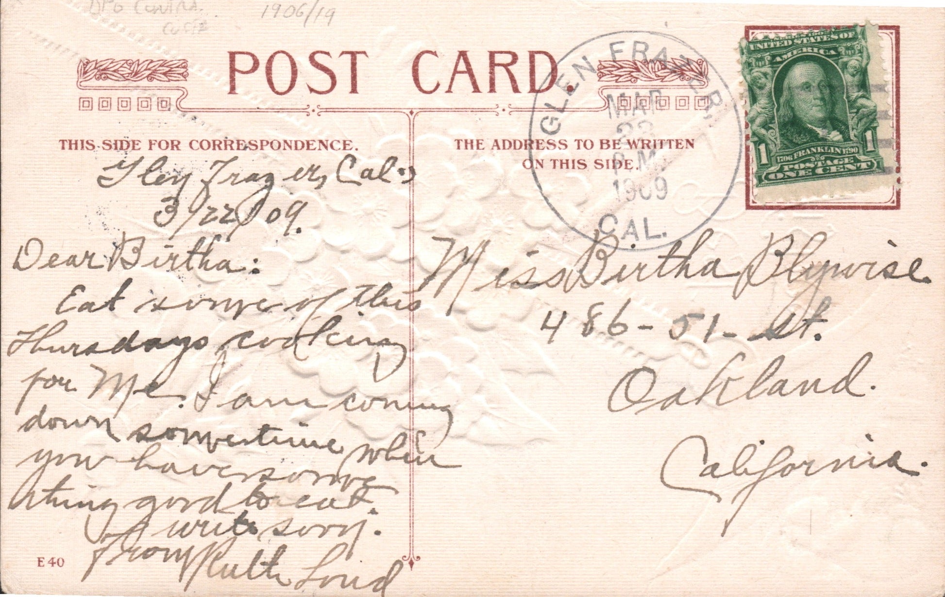 Glen Frazier (1906/1919) 1909 4-bar on post card
