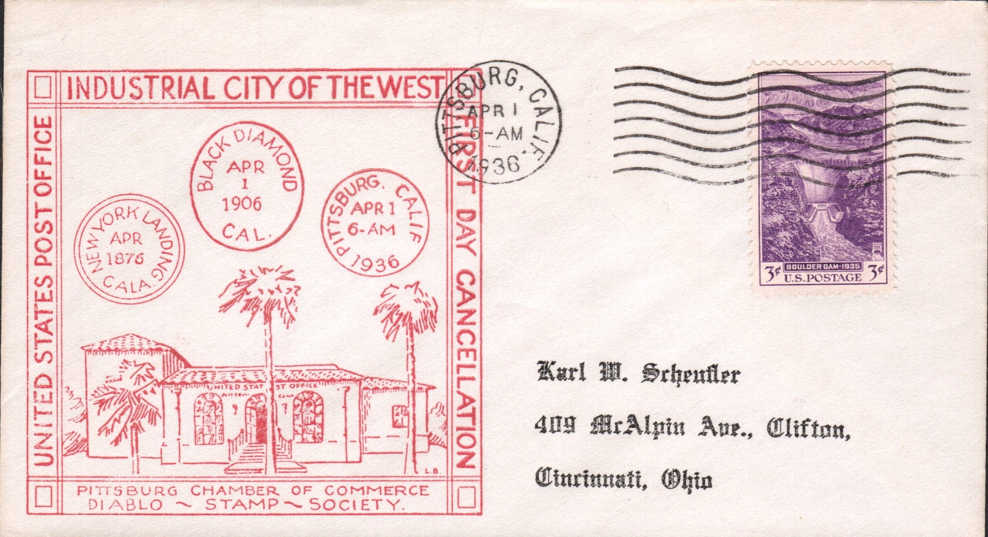 Pittsburg 1936 machine cancel on cacheted cover; 1965? double circle on cover.