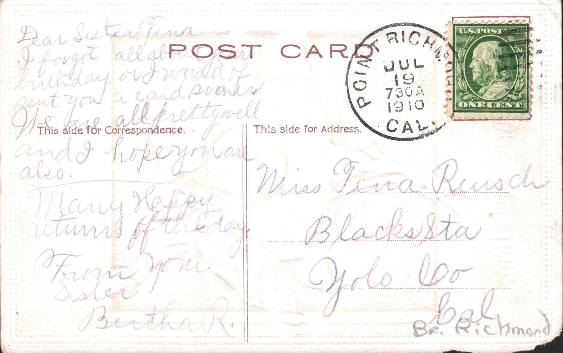 Point Richmond (1902-1910) 1910 duplex on post card, corner damage
