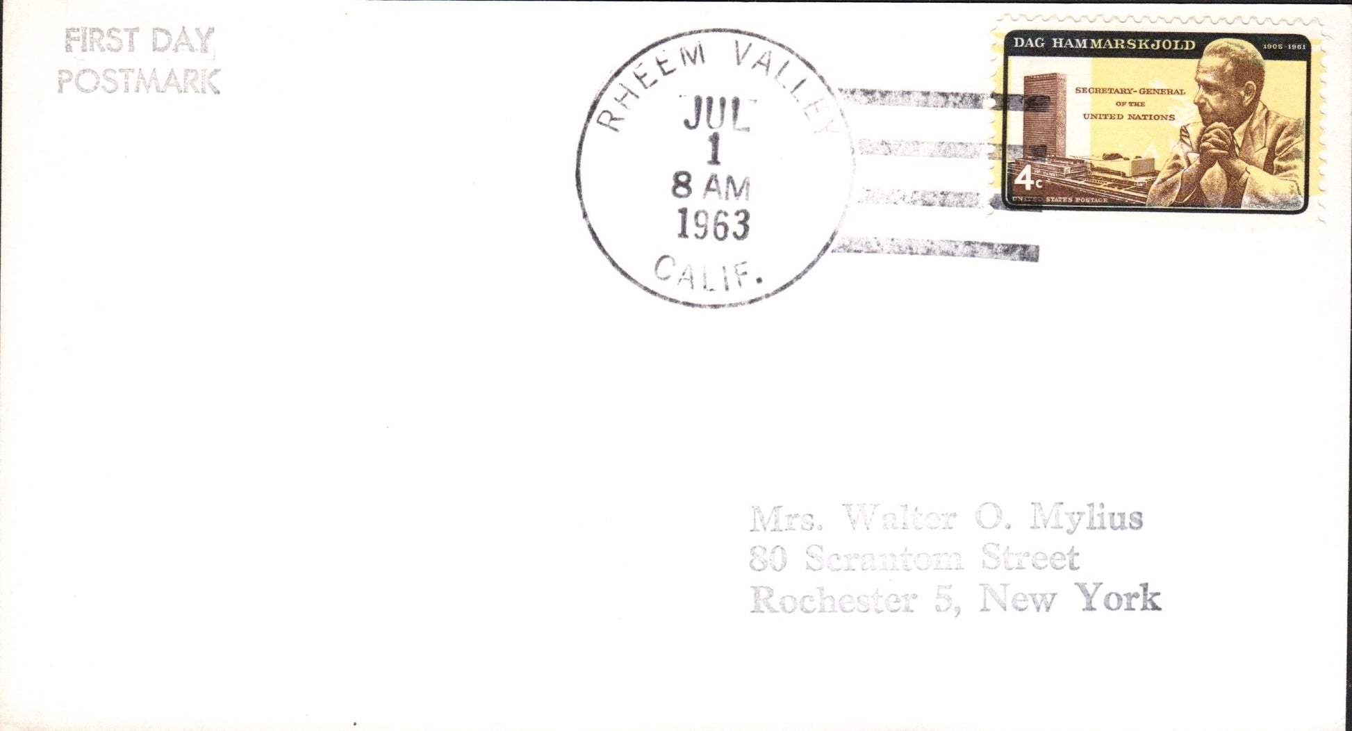 Rheem Valley 1963-4-bar on cover-sized card, FD new name; 1970 machine cancel on post card
