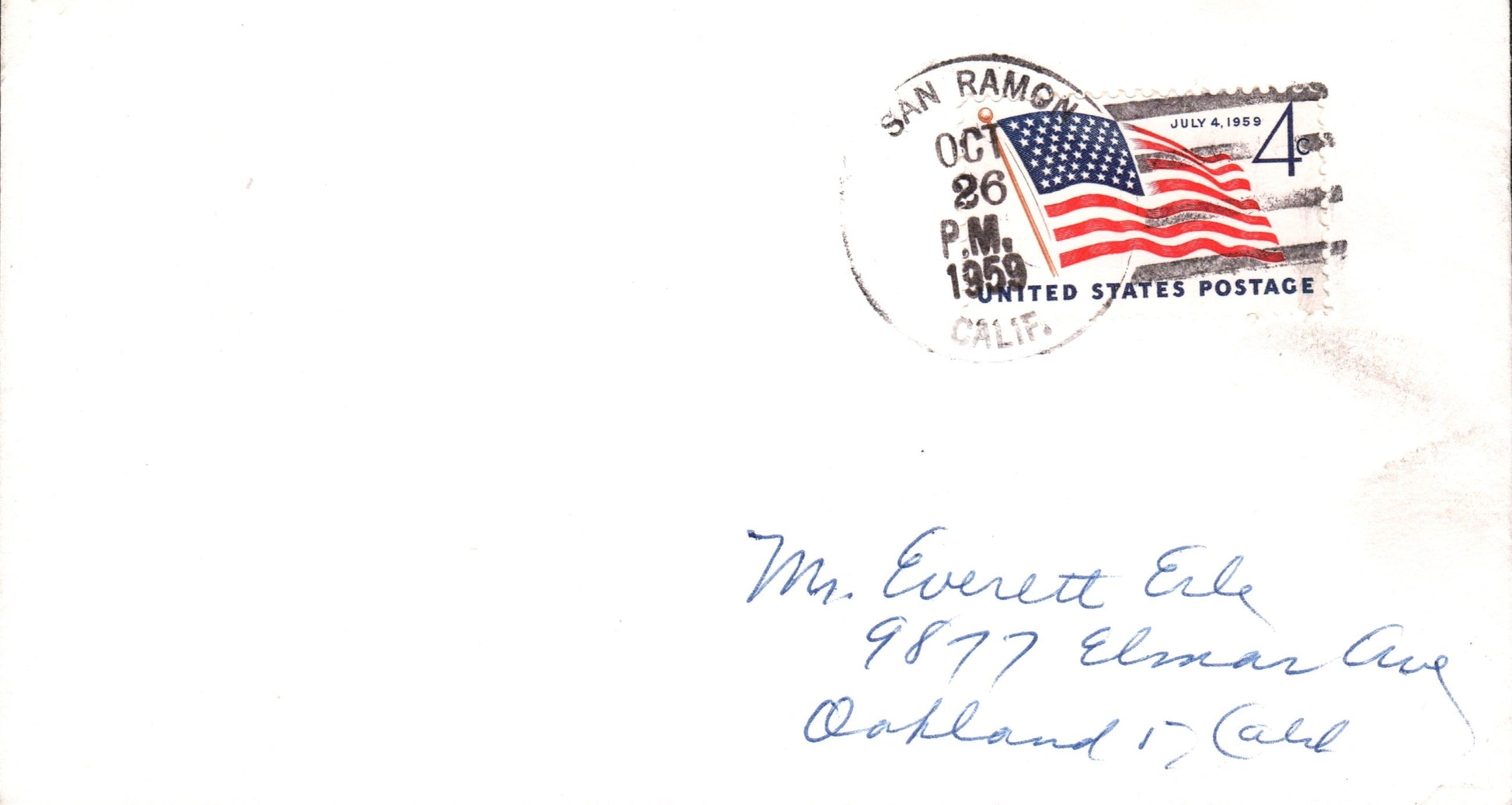 San Ramon 1959 4-bar on cover; light 1970 machine cancel on cover