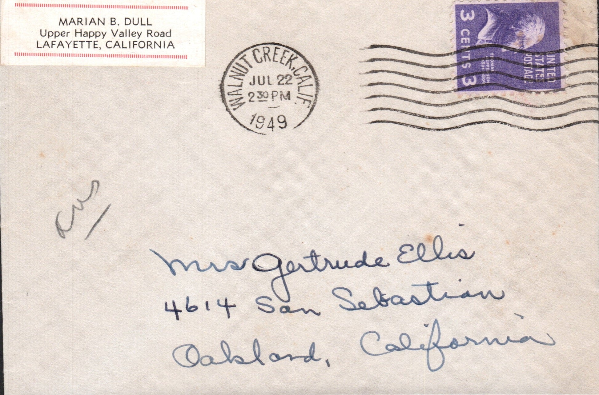 Walnut Creek 1949 machine cancel on cover; 1971 machine slogan “Defeat Muscular Dystrophy” on post card; undated “Superintendent Window Services” on penalty envelope