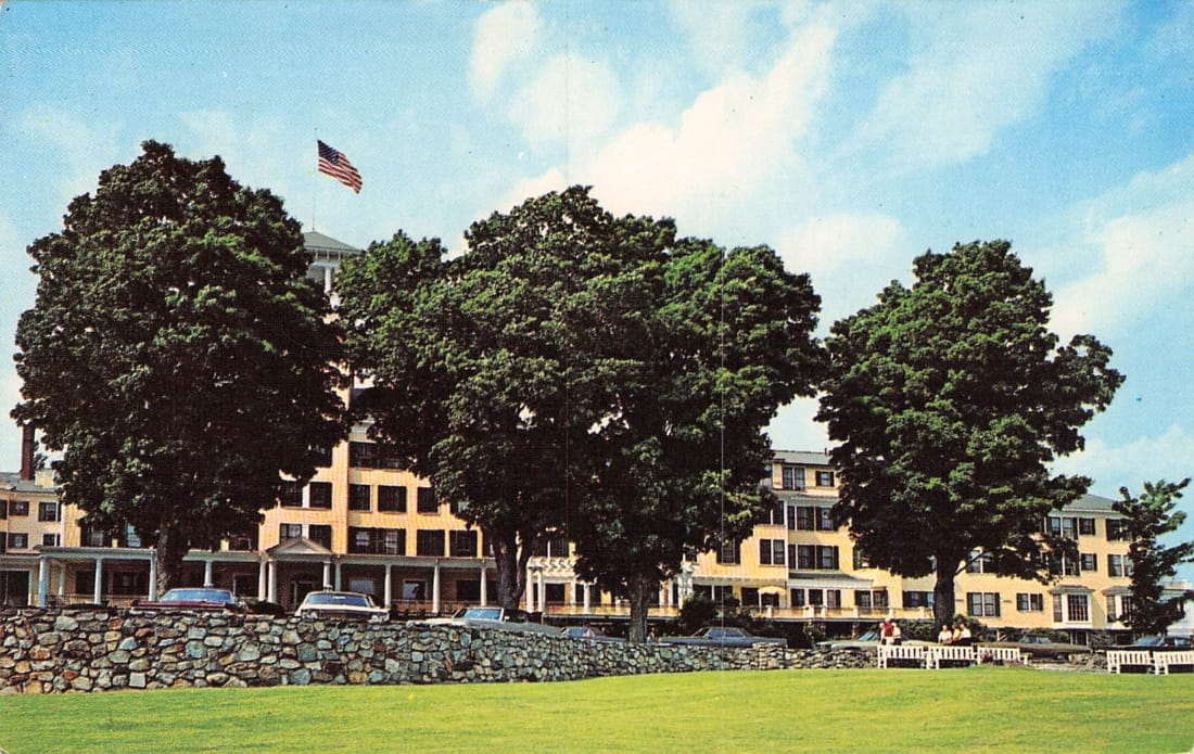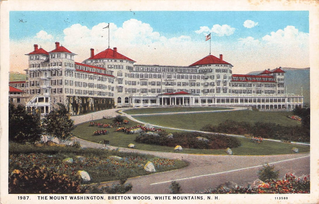 Breton Woods (1902-1966) 1912 4-bar on post card [Tip Top House in winter]; 1928 duplex in post card [view of Mt. Washington Hotel]