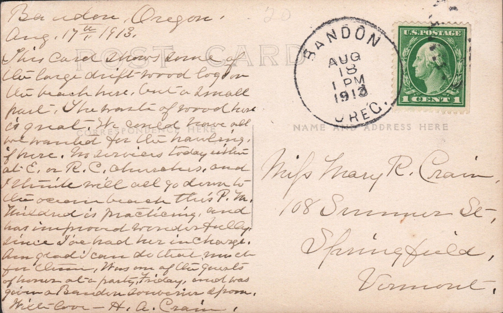 Bandon 1913 duplex on post card; 1971 machine cancel on cover; 1977 pictorial cancel “100 Years of Postal Service” on cover
