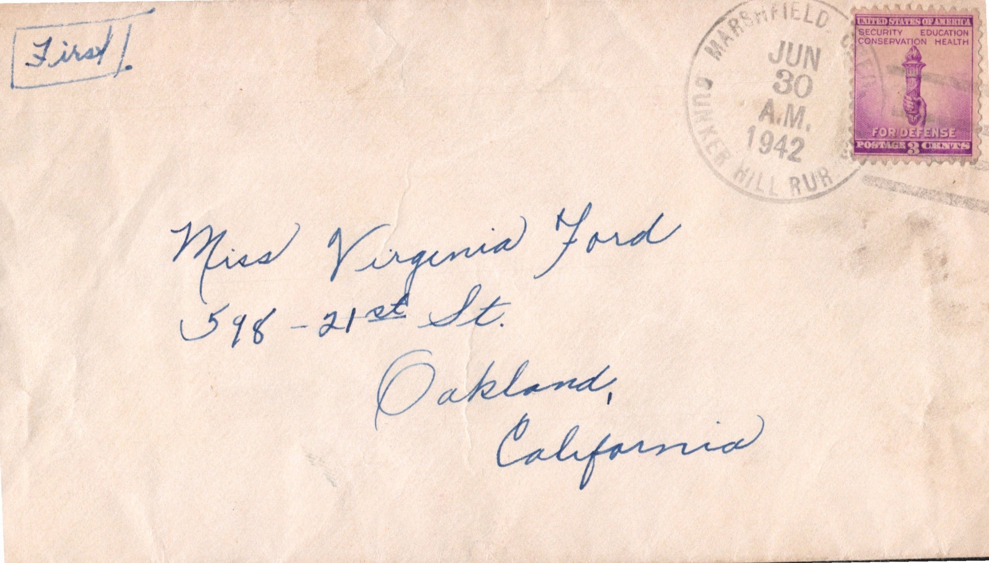 Bunker Hill RB (Marshfield) (1936-1945) 1942 4-bar on cover