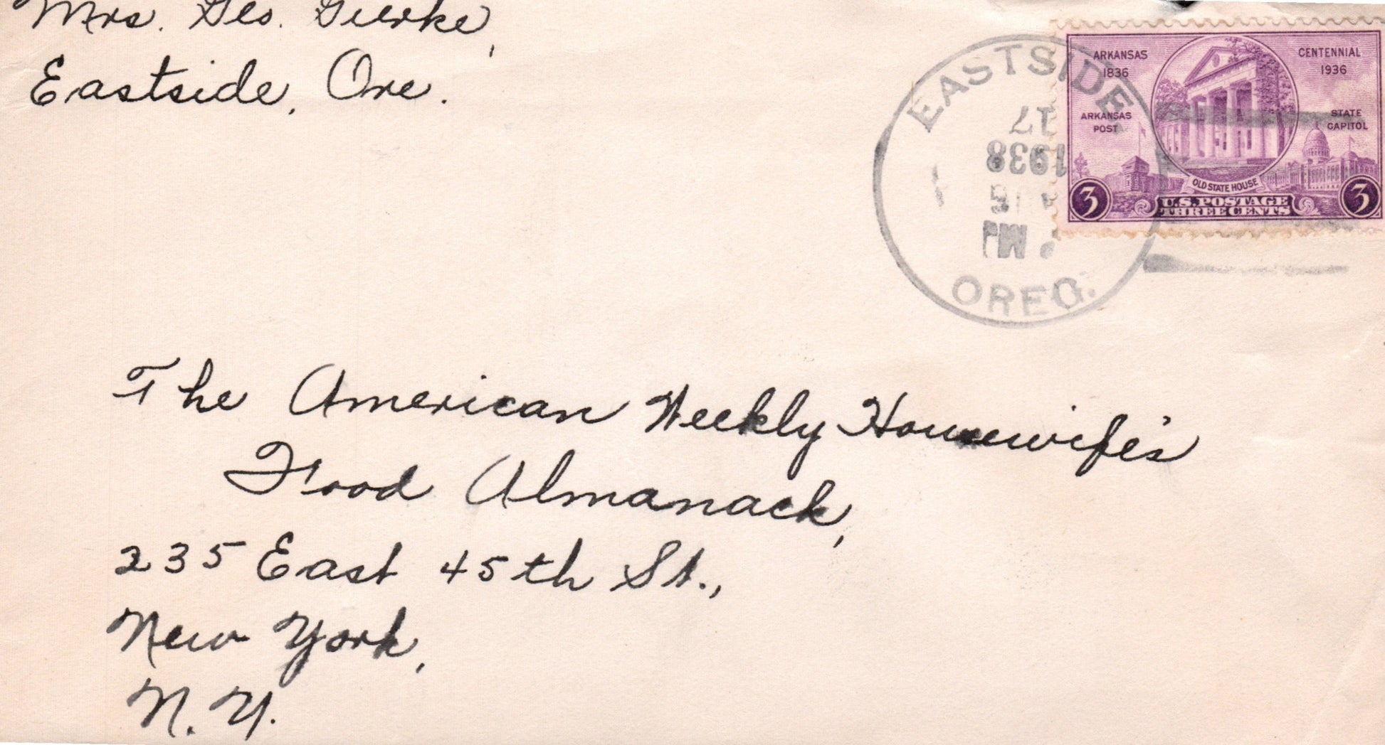 Eastside (1908-1957) 1938 4-bar on cover, date and year upside down